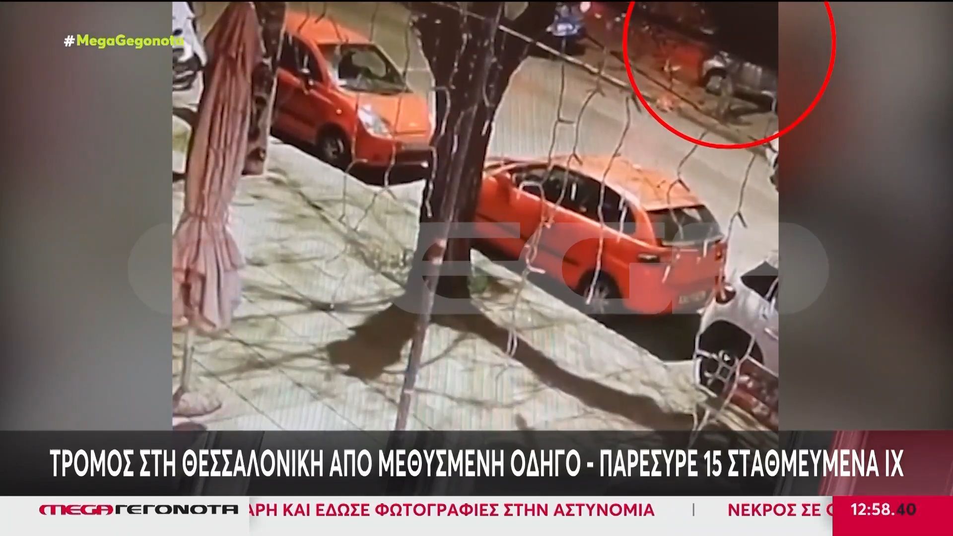 Θεσσαλονίκη: Η στιγμή που μεθυσμένη οδηγός παρασέρνει σταθμευμένα ΙΧ – MEGA ντοκουμέντο