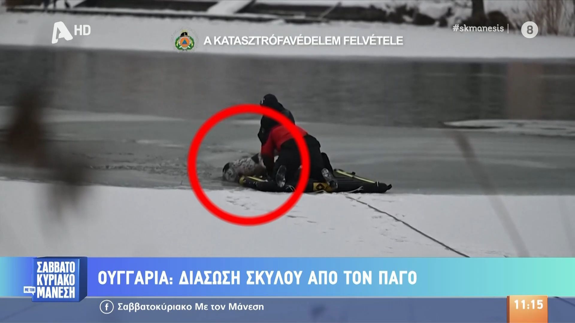 Ουγγαρία: Διάσωση σκύλου από τον πάγο