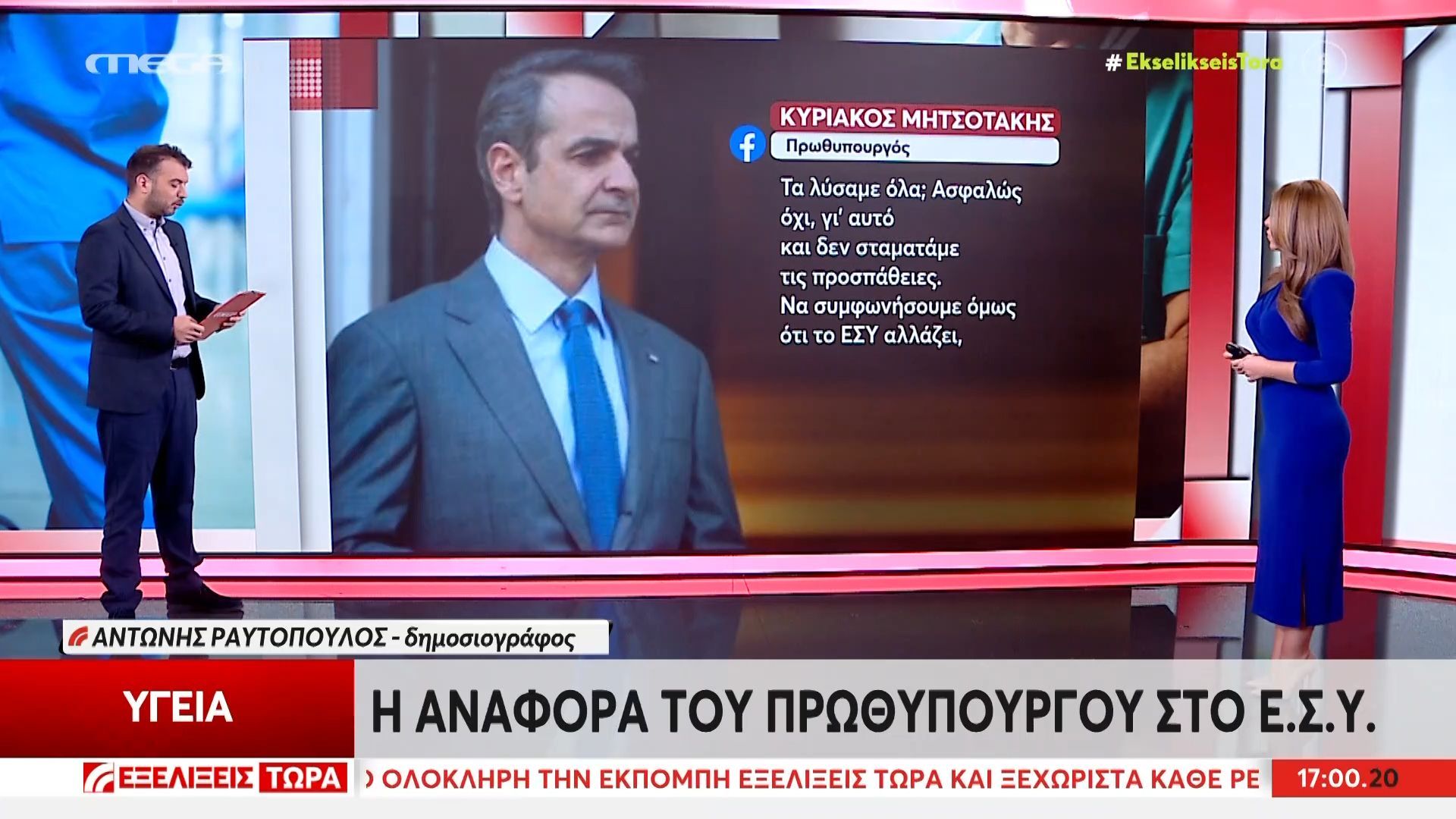 Στη διάρκεια της ομιλίας του, υπογράμμισε τις πρωτοβουλίες της κυβέρνησης για τη βελτίωση της υγειονομικής περίθαλψης, όπως η πρόσληψη προσωπικού και η χρηματοδότηση νέων έργων. Ο Πρωθυπουργός εξέφρασε τη δέσμευσή του για τη συνεχή στήριξη του Ε.Σ.Υ., αναγνωρίζοντας την κρίσιμη του ρόλο στην κοινωνία.