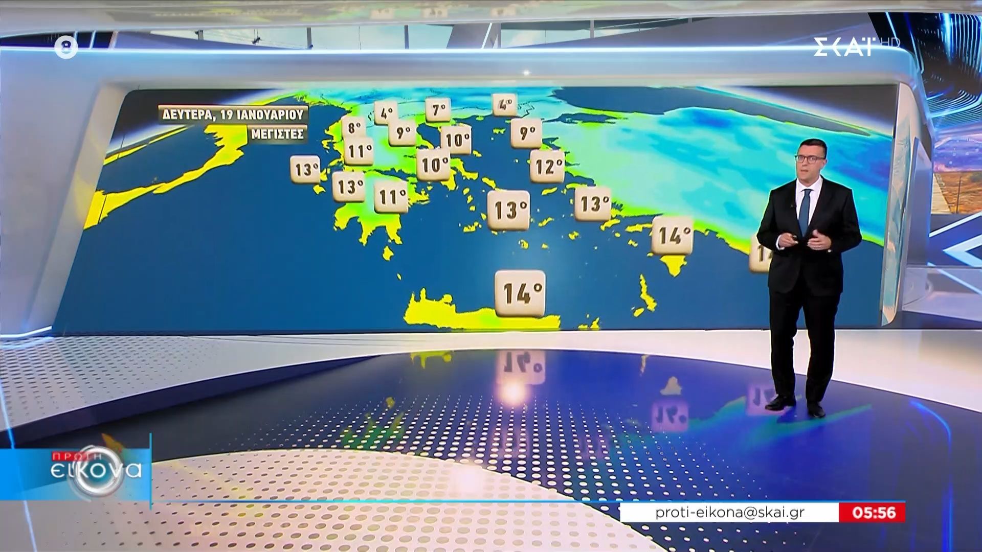 Ο Παναγιώτης Γιαννόπουλος αναλύει τις καιρικές συνθήκες που θα επικρατήσουν τη Δευτέρα, 19 Ιανουαρίου 2026. Σύμφωνα με τις τελευταίες προγνώσεις, αναμένονται καταιγίδες και ισχυροί άνεμοι σε πολλές περιοχές της χώρας, ενώ οι θερμοκρασίες θα παρουσιάσουν πτώση.