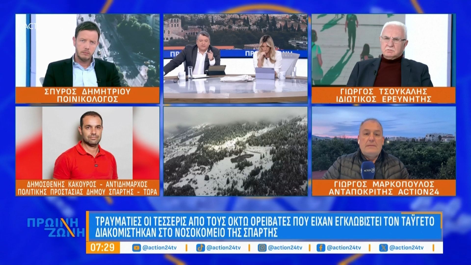 Οκτώ ορειβάτες εγκλωβίστηκαν στον Ταΰγετο, με συνέπεια να τραυματιστούν τέσσερις από αυτούς. Οι τραυματίες διακομίστηκαν άμεσα στο νοσοκομείο Σπάρτης, όπου τους παρέχονται οι απαραίτητες ιατρικές φροντίδες.
