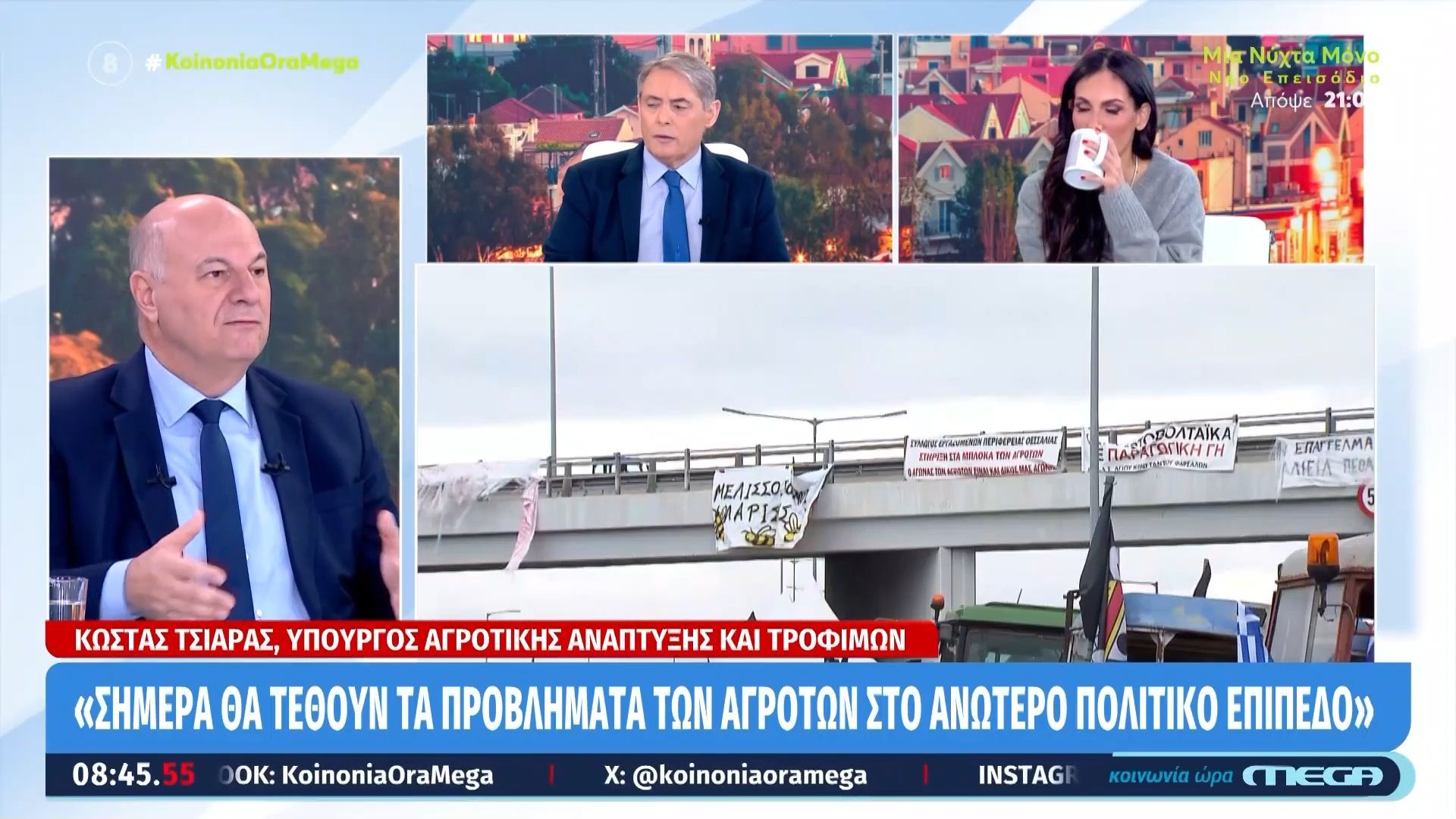 Ο κ. Τσιάρας δήλωσε ότι έχουν ήδη ληφθεί μέτρα στήριξης, ενώ τόνισε τη διάθεση της κυβέρνησης για διάλογο και συνεργασία με τους αγρότες. Αναφέρθηκε επίσης στην ειδική τιμολόγηση του ηλεκτρικού ρεύματος για τους αγρότες, σημειώνοντας ότι η Ελλάδα έχει προχωρήσει σε πρωτοβουλίες που δεν έχουν υλοποιηθεί σε άλλες ευρωπαϊκές χώρες.