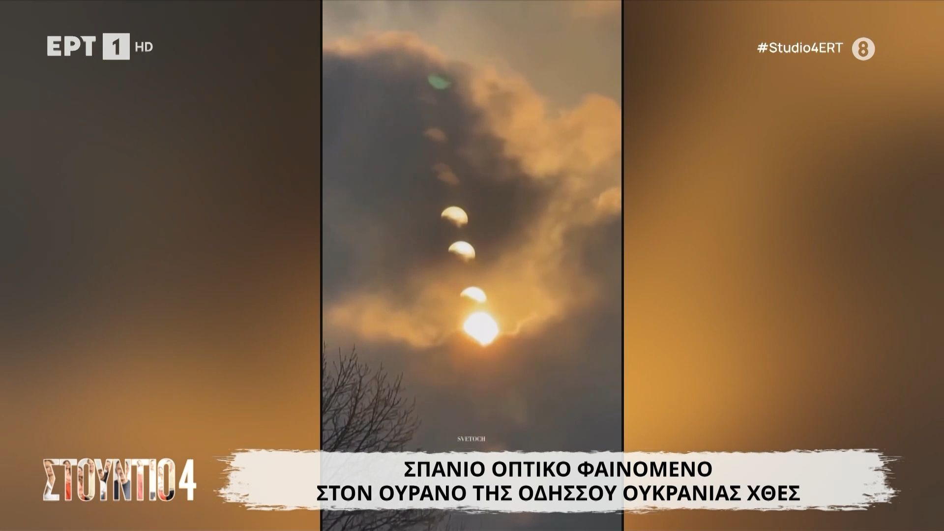 Σπάνιο ουρανικό φαινόμενο στην Οδησσό με πολλαπλούς ήλιους μέσα από την διάθλαση ηλιακών ακτίνων στους παγοκρυστάλλους της ατμόσφαιρας