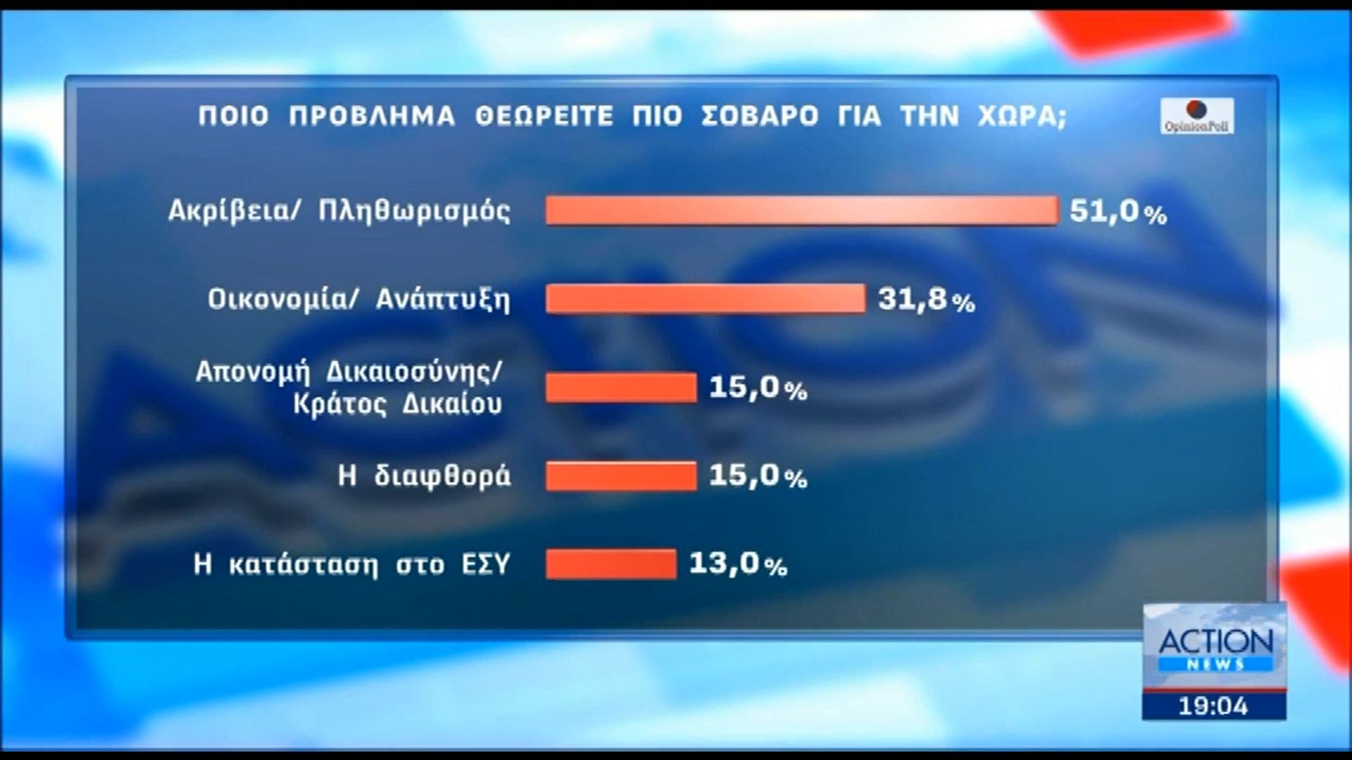 Opinion Poll: Ποιο πρόβλημα θεωρείτε πιο σοβαρό για τη χώρα – Στο 51% η ακρίβεια