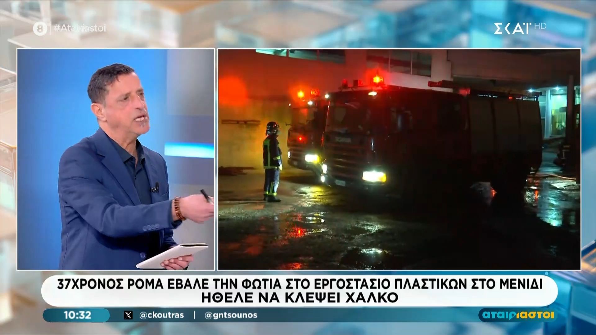 Φωτιά ξέσπασε σε εργοστάσιο πλαστικών στο Μενίδι, προκληθείσα από έναν 37χρονο Ρομά, ο οποίος επιχείρησε να κλέψει χαλκό. Η φωτιά επεκτάθηκε γρήγορα, προκαλώντας σοβαρές ζημιές στις εγκαταστάσεις και αναστάτωση στην περιοχή.