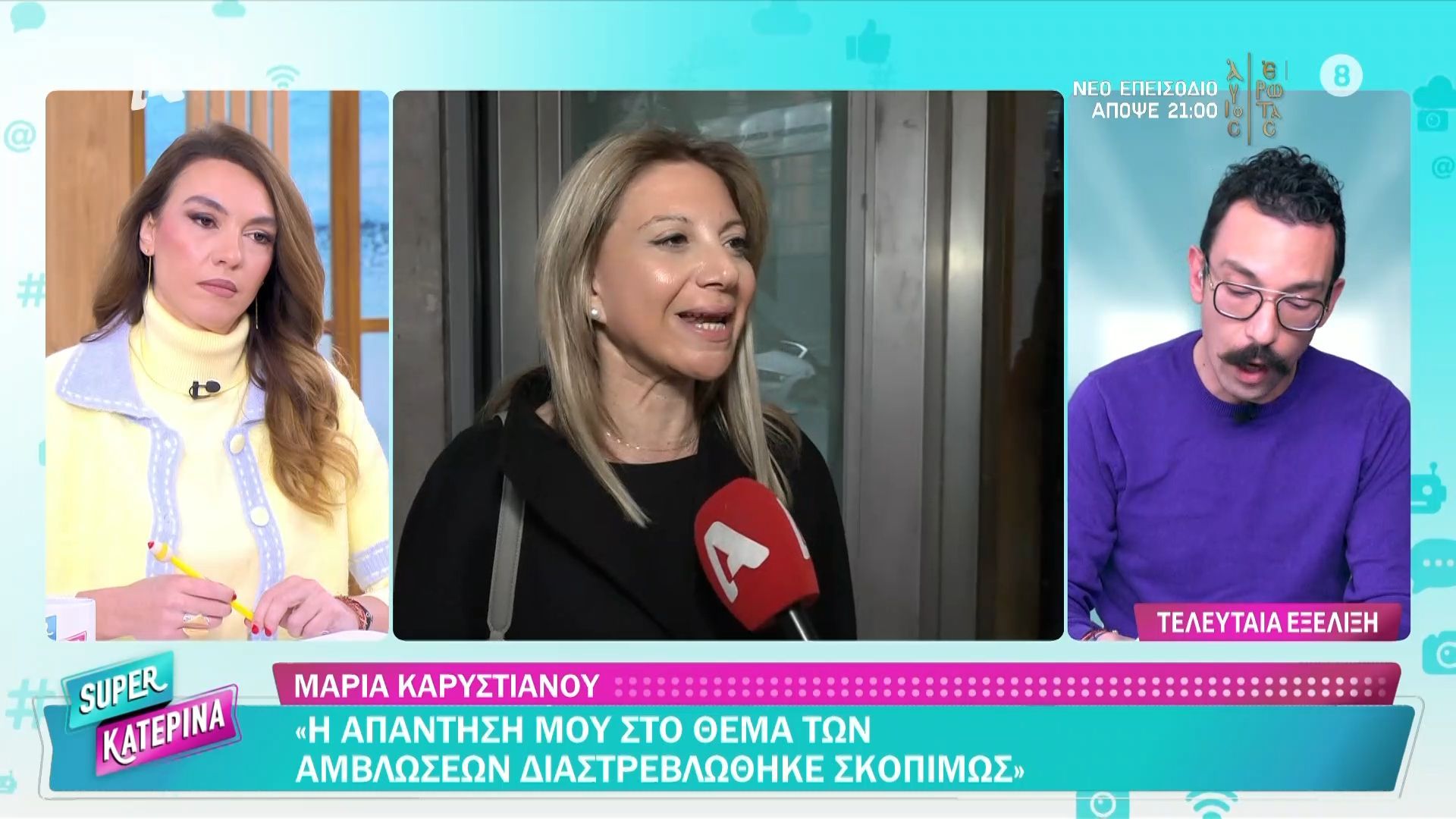 Η Μαρία Καρυστιανού απάντησε στις έντονες αντιδράσεις που προκλήθηκαν από τις πρόσφατες δηλώσεις της σχετικά με τις αμβλώσεις, δηλώνοντας ότι οι τοποθετήσεις της έχουν διαστρεβλωθεί σκοπίμως. Σε ανάρτησή της, επισημαίνει ότι η συζήτηση γύρω από το θέμα απαιτεί προσοχή και σεβασμό στις διαφορετικές απόψεις.