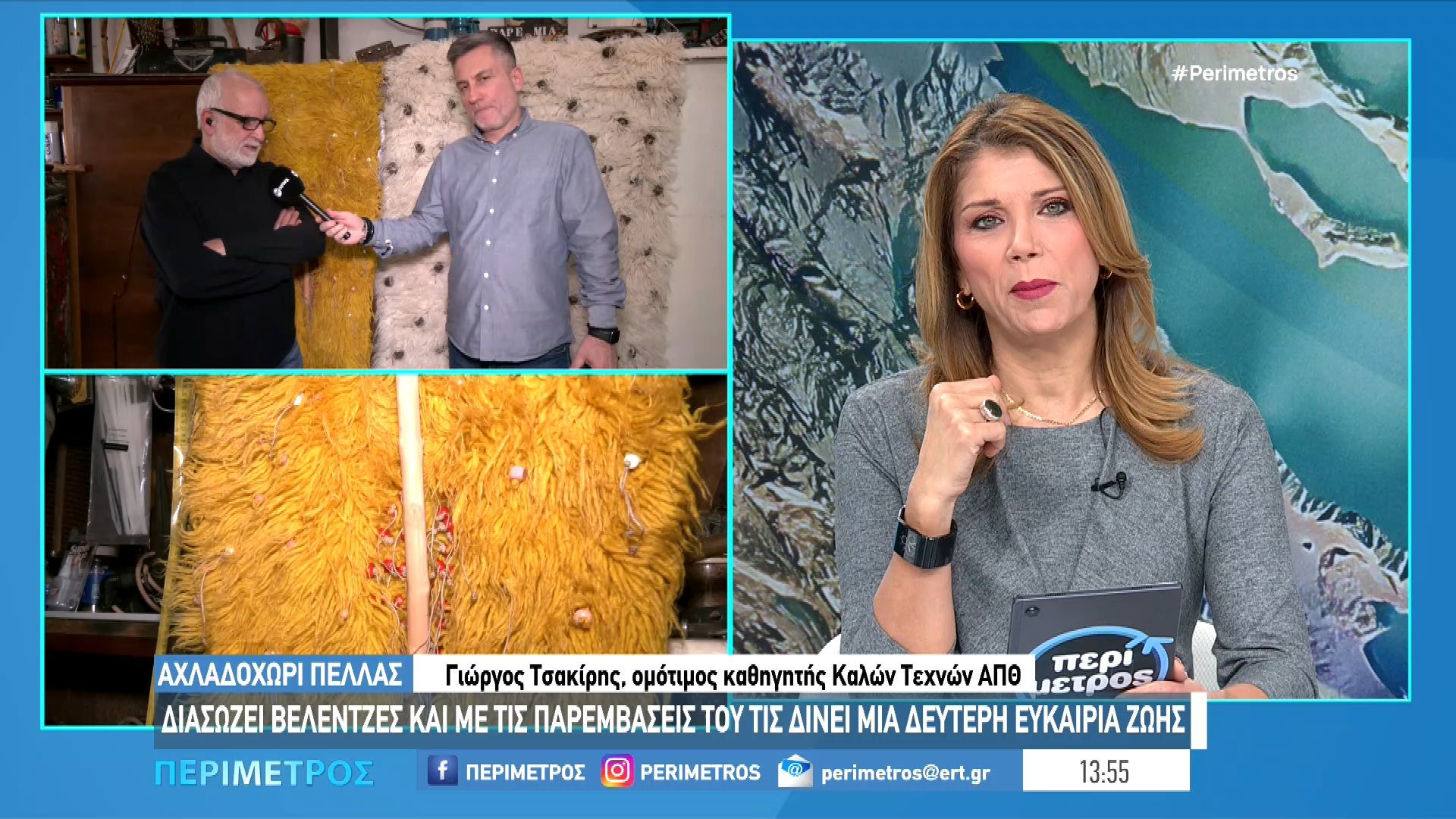 Στο Αχλαδοχώρι Πέλλας, ο Γιώργος Τσακίρης, ομότιμος καθηγητής καλών τεχνών, αναβιώνει τη βελέντζα, ένα παραδοσιακό υφαντό, μετατρέποντάς την σε έργο τέχνης. Με τις παρεμβάσεις του, το χρηστικό αυτό αντικείμενο αποκτά νέα διάσταση και νόημα, αποδεικνύοντας τη σημασία των βιωμάτων στη διαδικασία δημιουργίας.