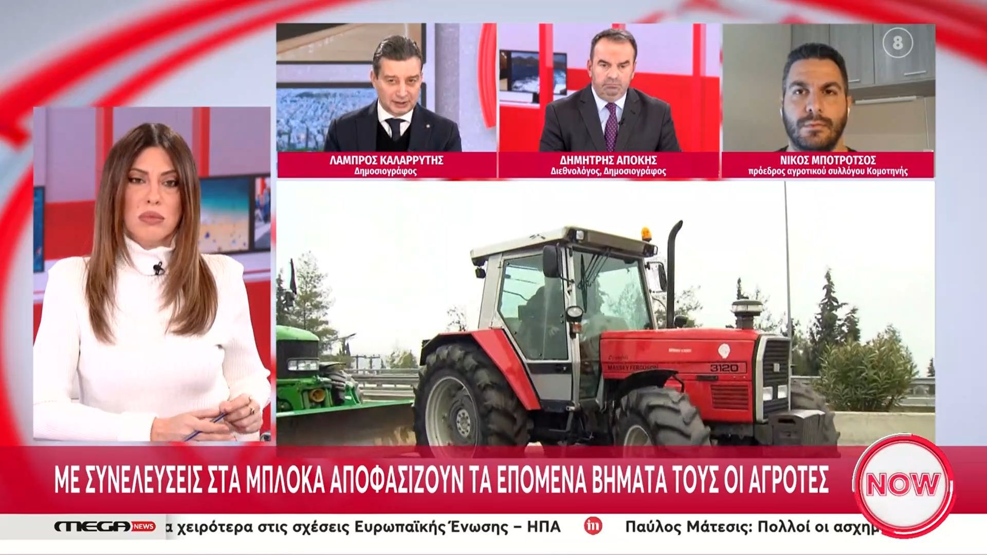 Οι αγρότες συγκεντρώνονται στα μπλόκα προκειμένου να συζητήσουν και να αποφασίσουν τα επόμενα βήματά τους μετά τη συνάντηση με τον Πρωθυπουργό Κυριάκο Μητσοτάκη. Ο δημοσιογράφος Άρης Καλαρρύτης και ο διεθνολόγος Δημήτρης Απόκης αναλύουν τον απόηχο αυτής της συνάντησης και τις αντιδράσεις που προκύπτουν από την αγροτική κοινότητα.