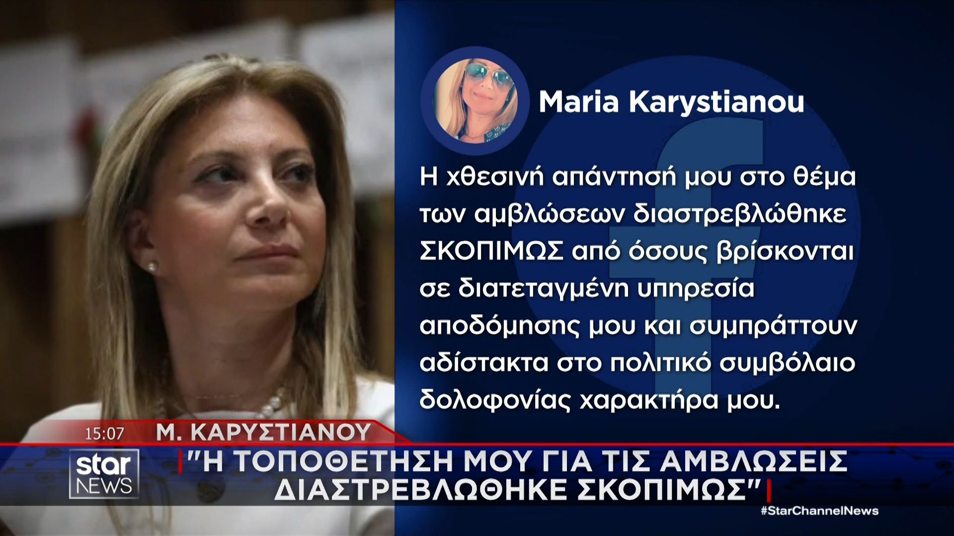Η ίδια υποστηρίζει ότι οι δηλώσεις της έχουν διαστρεβλωθεί σκοπίμως, προσπαθώντας να διευκρινίσει τη θέση της. Η συζήτηση γύρω από το θέμα των αμβλώσεων συνεχίζει να πυροδοτεί έντονες αντιδράσεις στην κοινωνία, με την Καρυστιανού να επισημαίνει την ανάγκη για διάλογο και κατανόηση.