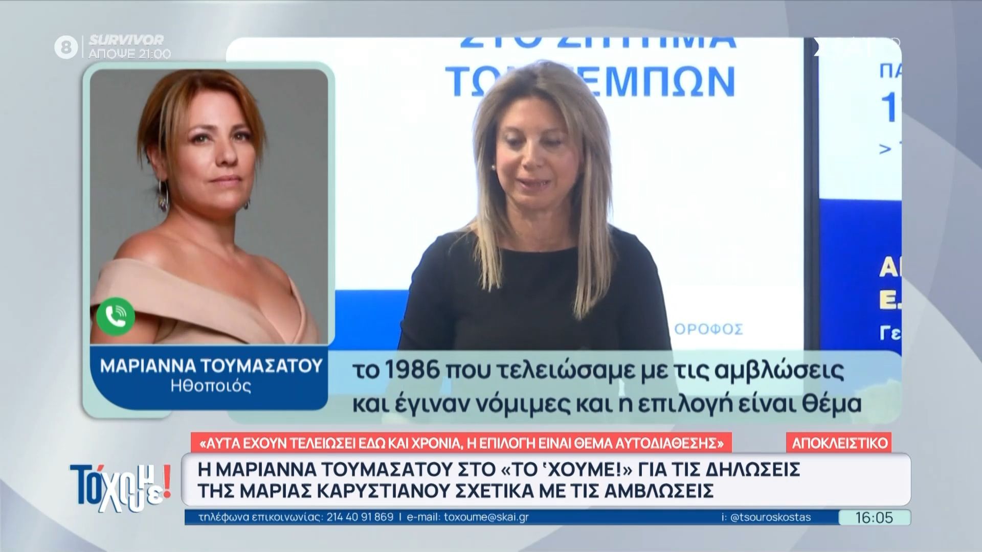 Μαριάννα Τουμασάτου για Μαρία Καρυστιανού: «Διαφωνώ με την άποψή της για τις αμβλώσεις»