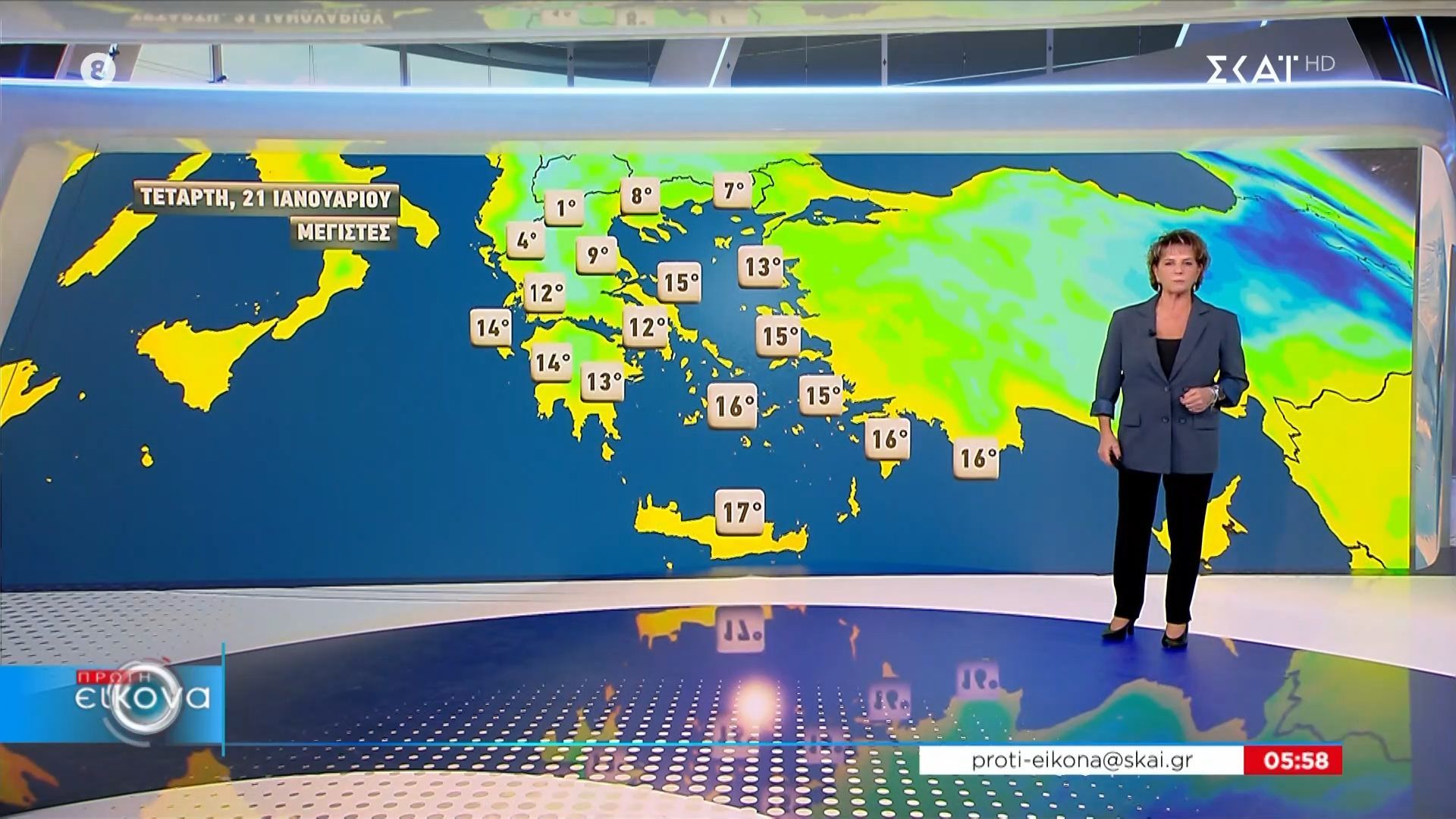 Η Χριστίνα Σούζη, μετεωρολόγος του ΣΚΑΪ, μας παρέχει μια λεπτομερή πρόγνωση του καιρού για την Τετάρτη, 21 Ιανουαρίου 2026. Αναμένονται κυρίως νεφελώδεις συνθήκες με πιθανές βροχοπτώσεις σε αρκετές περιοχές της χώρας, ενώ οι θερμοκρασίες θα κυμανθούν σε μέτρια επίπεδα.