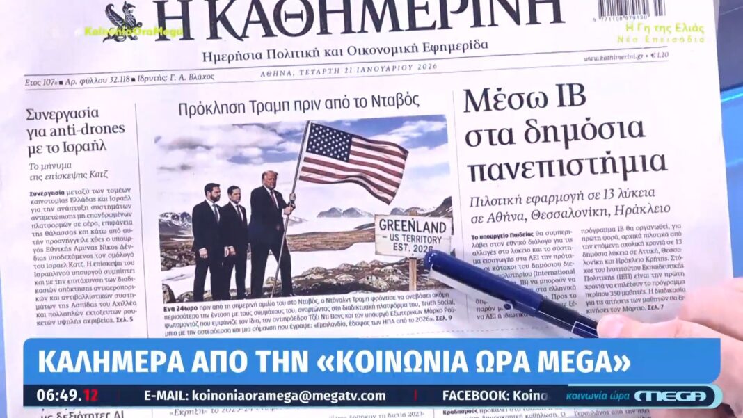 Τα πρωτοσέλιδα των εφημερίδων σήμερα | 21/01/2026