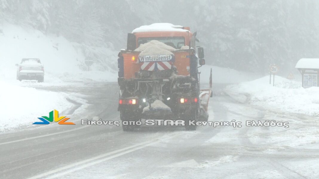 Μαζικές επιχειρήσεις αποχιονισμού στην Ε.Ο. Λαμίας - Καρπενησίου με στόχο τη διατήρηση της βατότητας και την ασφάλεια των οδηγών