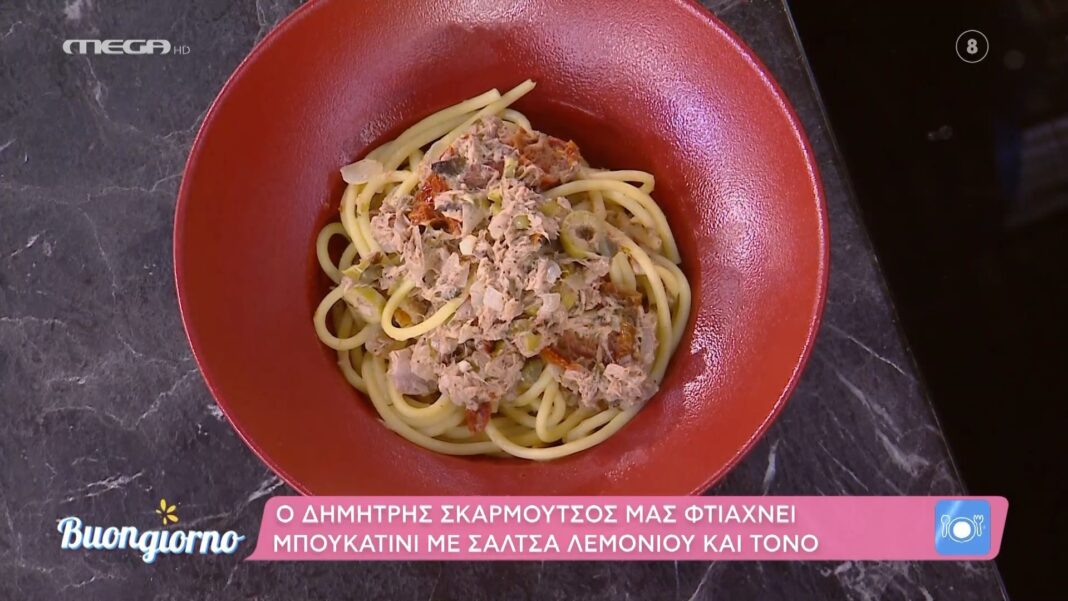 Σε αυτό το πιάτο, οι γεύσεις του τόνου, των αντζούγιων και των ελιών συνδυάζονται αρμονικά με τη δροσιά του λεμονιού και τη νοστιμιά της παρμεζάνας. Τα μπουκατίνι, ένα ιδιαίτερο ζυμαρικό, απορροφούν την πλούσια σάλτσα, προσφέροντας μια μοναδική εμπειρία γεύσης.