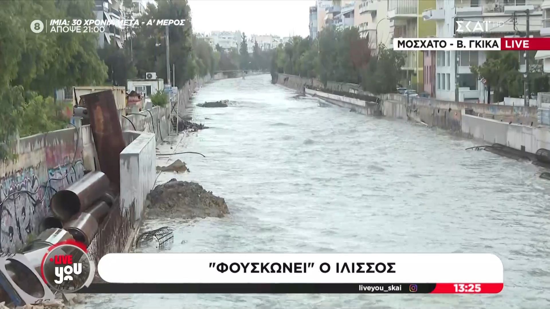 Η στάθμη του Ιλισσού συνεχίζει να αυξάνεται, προκαλώντας ανησυχίες στους κατοίκους της περιοχής. Παρά τις περιορισμένες βροχοπτώσεις μέχρι στιγμής, οι ειδικοί προειδοποιούν ότι μια έντονη βροχή θα μπορούσε να προκαλέσει σοβαρές πλημμύρες.