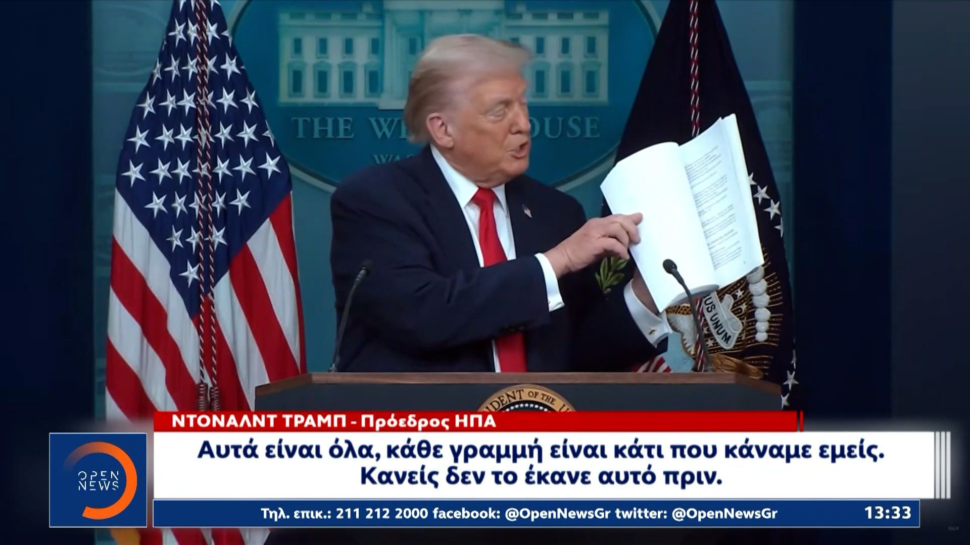 Τραμπ: «Σε αυτό το βιβλίο κάθε γραμμή είναι σπουδαία πράγματα που κάναμε»