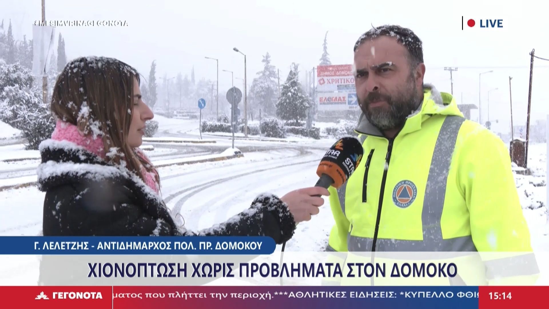Ο αντιδήμαρχος πολιτικής προστασίας του δήμου Δομοκού, Γιώργος Λελετζής, μίλησε για την πρόσφατη χιονόπτωση που επηρεάζει την περιοχή. Σημείωσε τις προετοιμασίες της δημοτικής αρχής για την αντιμετώπιση των προβλημάτων που προκαλεί η κακοκαιρία, καθώς και τα μέτρα ασφαλείας που έχουν ληφθεί για την προστασία των πολιτών.