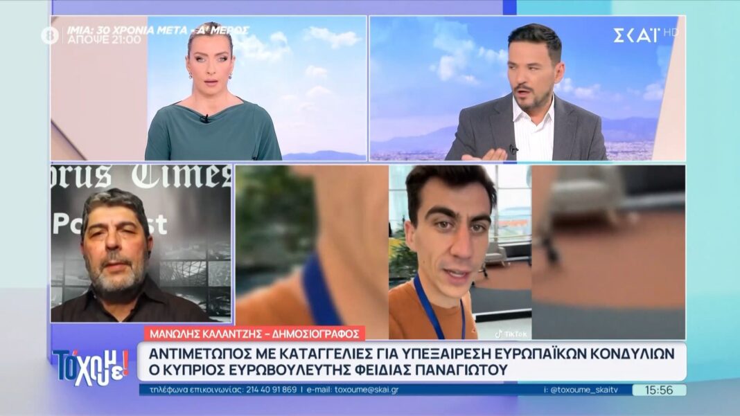 Σύμφωνα με καταγγελία που εξετάζεται, ο Φειδίας Παναγιώτου φέρεται να έχει ενοικιάσει μια μεζονέτα στη Λεμεσό, με τα έξοδα να καλύπτονται από κονδύλια της Ευρωπαϊκής Ένωσης. Η υπόθεση έχει προκαλέσει ανησυχία, καθώς εγείρει ερωτήματα σχετικά με τη διαχείριση των ευρωπαϊκών χρηματοδοτήσεων.