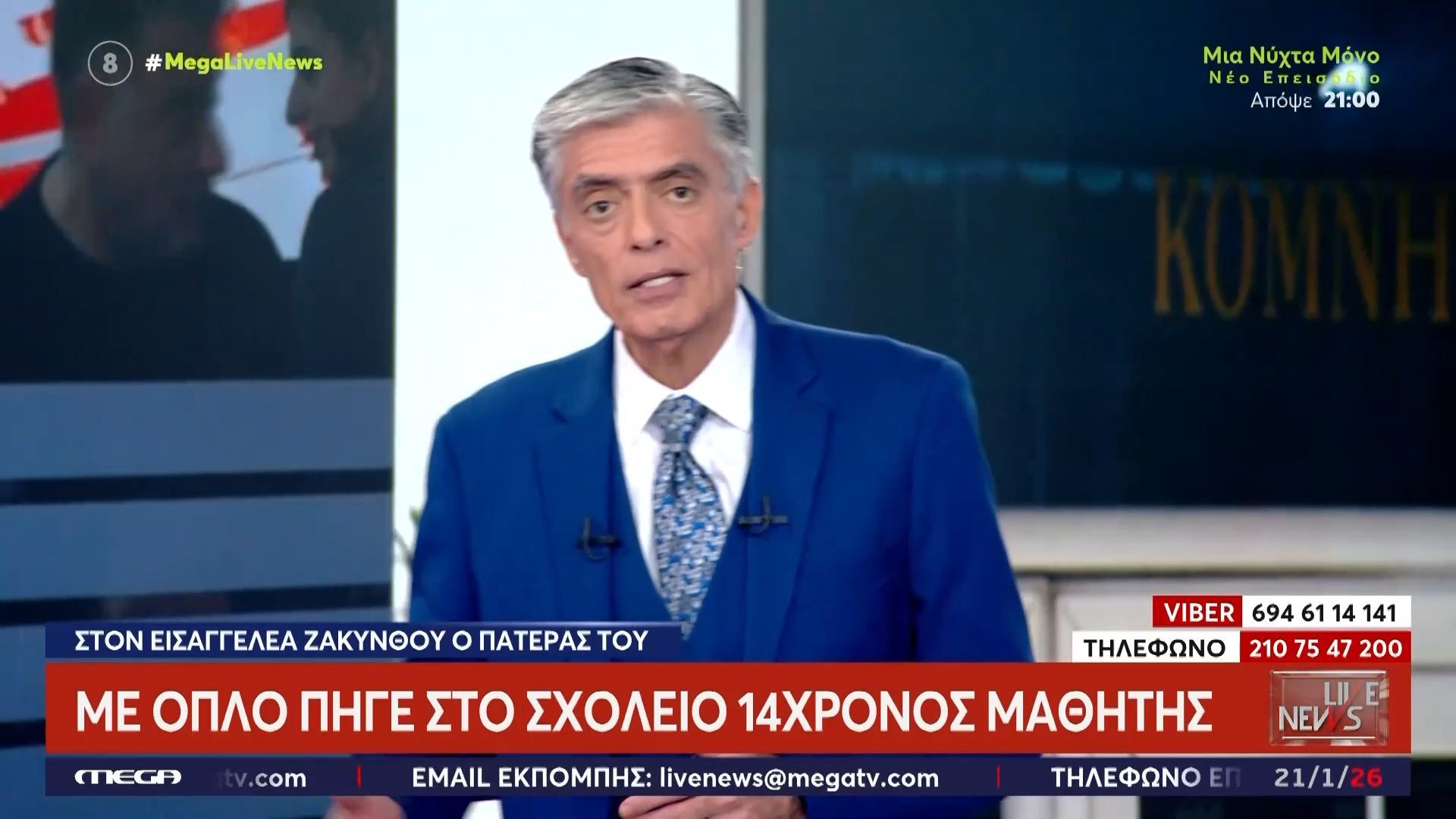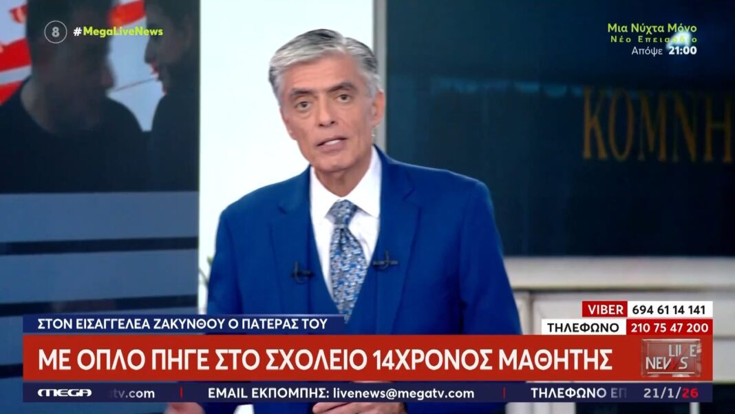 Ο Νίκος Ευαγγελάτος εξέφρασε τη βαθιά του ανησυχία σχετικά με την περίπτωση του 14χρονου στη Ζάκυνθο, ο οποίος πήγε στο σχολείο με όπλο. Τόνισε ότι η εικόνα μιας οικογένειας που έχει όπλα στο σπίτι, στα οποία έχουν πρόσβαση παιδιά, είναι απαράδεκτη και επικίνδυνη.