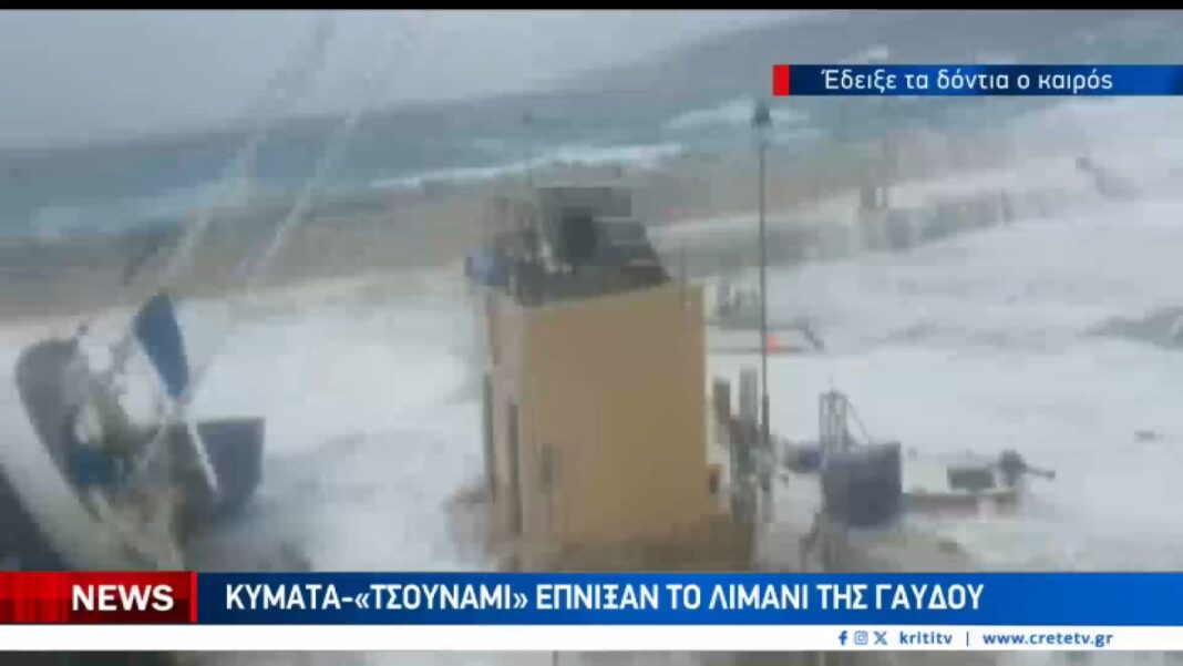 Η νότια Κρήτη και η Γαύδος πλήττονται από ισχυρούς ανέμους και σφοδρή κακοκαιρία, με αποτέλεσμα τη δημιουργία μεγάλης θαλασσοταραχής. Ιστιοπλοϊκά σκάφη έχουν χαθεί στη θάλασσα, ενώ οι παραλίες στην Παλαιόχωρα έχουν πλημμυρίσει, επηρεάζοντας τις αυλές των σπιτιών.