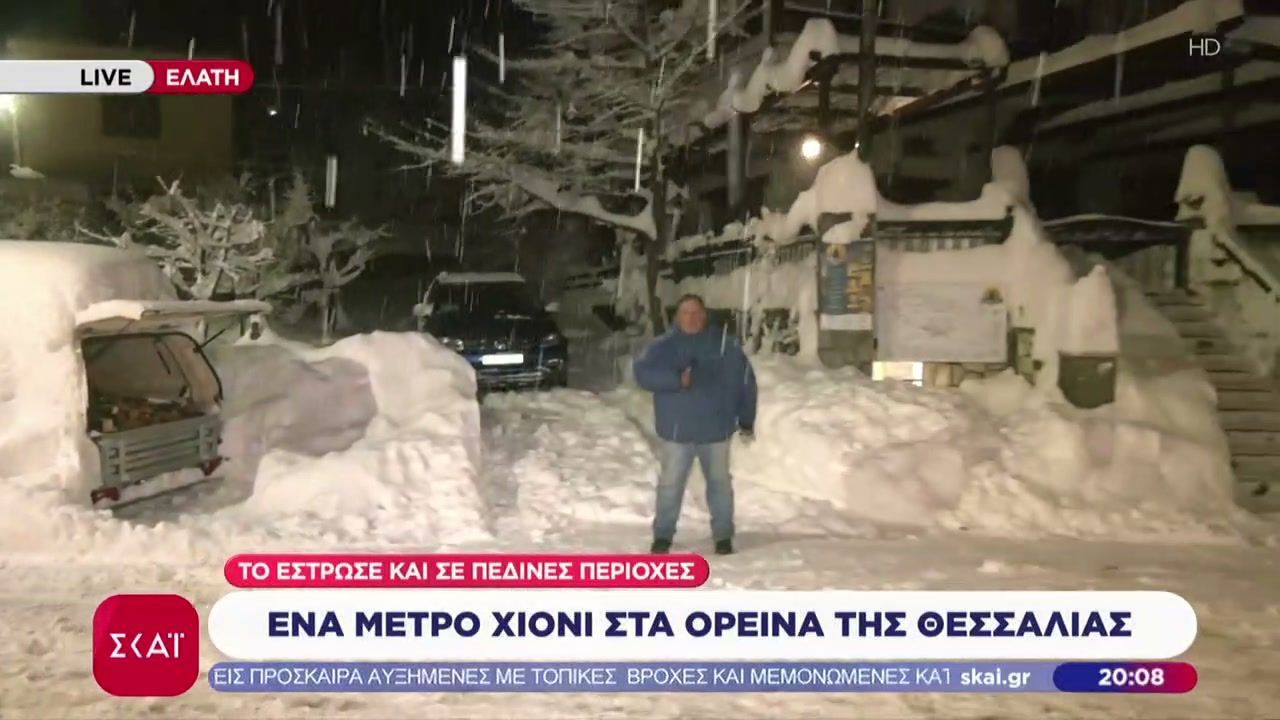 Σοβαρά προβλήματα έχουν προκύψει στις ορεινές περιοχές της Θεσσαλίας λόγω της έντονης χιονόπτωσης, που έχει φτάσει το ένα μέτρο. Οι μετακινήσεις έχουν περιοριστεί σημαντικά, με πολλούς δρόμους να παραμένουν κλειστοί και τις αρχές να προειδοποιούν τους πολίτες να αποφεύγουν τις άσκοπες μετακινήσεις.