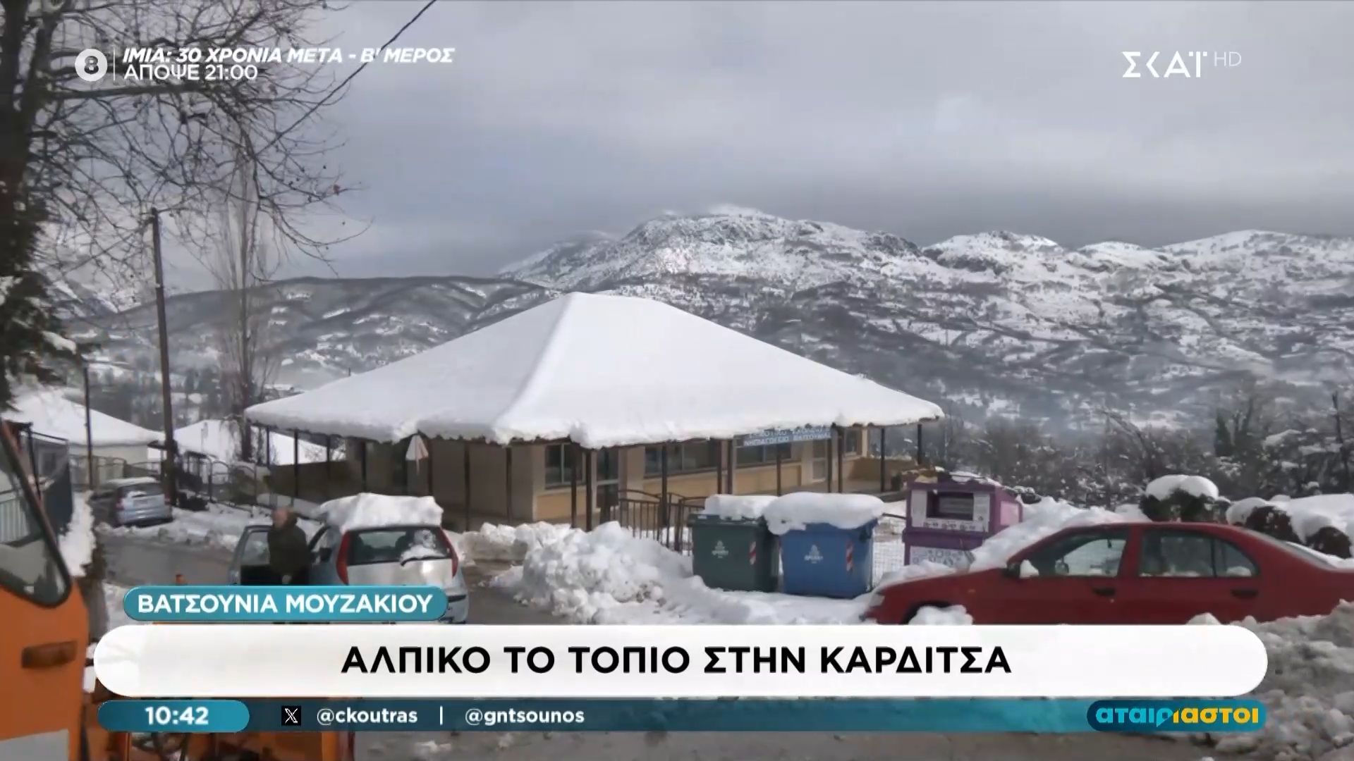 Το χιονισμένο τοπίο της Βατσουνιάς, στο δήμο Μουζακίου, προσφέρει μια εντυπωσιακή αλπική ατμόσφαιρα, εντυπωσιάζοντας τους κατοίκους και τους επισκέπτες. Η περιοχή διακρίνεται για την φυσική της ομορφιά και τις χιονισμένες της πλαγιές, οι οποίες δημιουργούν ένα μαγευτικό σκηνικό.