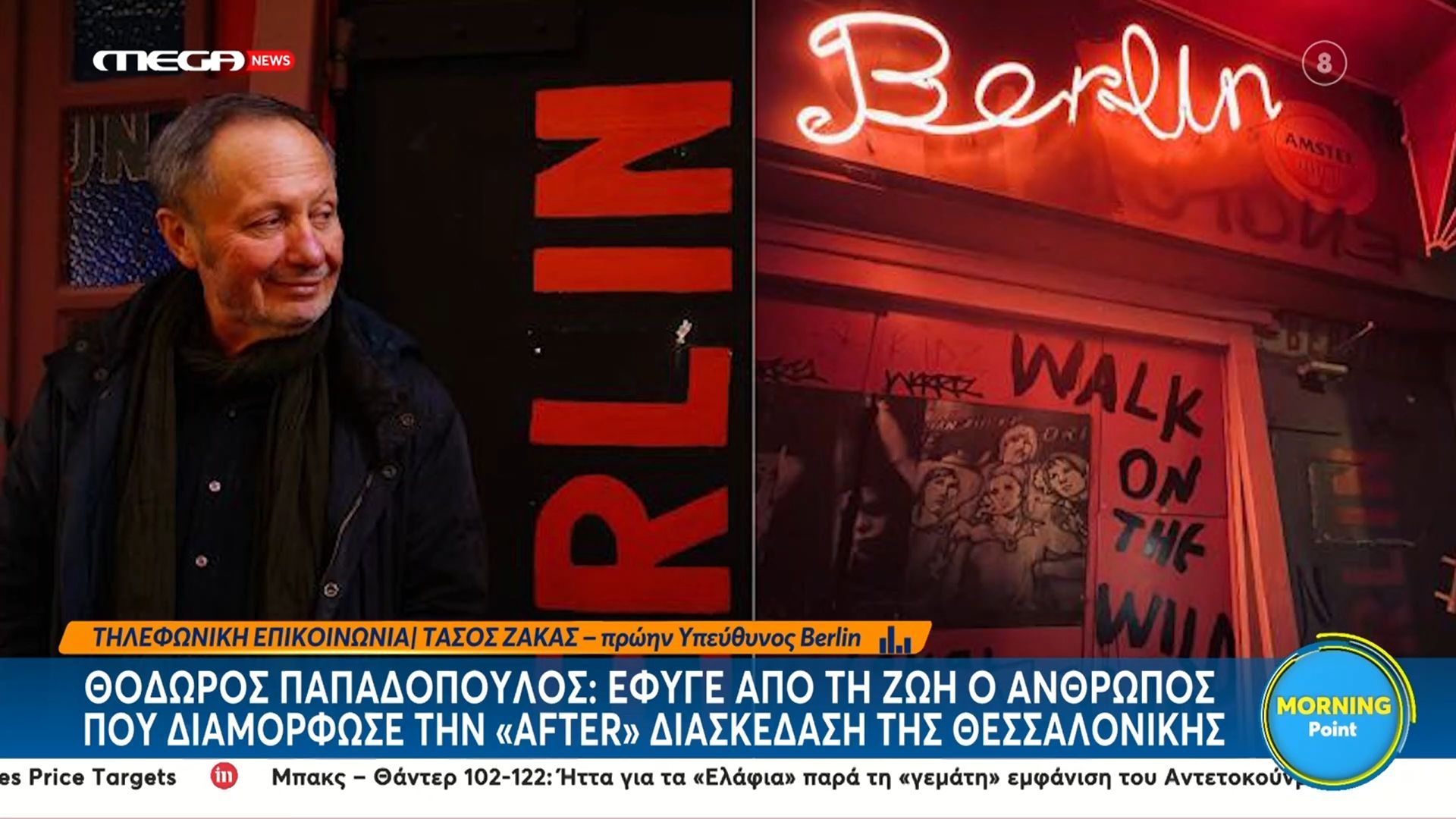 Ο θάνατος του Θόδωρου Παπαδόπουλου προκαλεί θλίψη στη Θεσσαλονίκη, με το "Berlin" να παραμένει ζωντανό στις αναμνήσεις αυτών που έζησαν στιγμές χαράς εκεί.