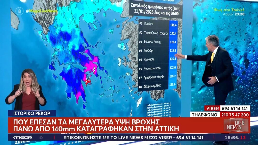 Η Αττική πλήττεται από έντονα καιρικά φαινόμενα, με τις βροχοπτώσεις να ξεπερνούν τα 140mm σε πολλές περιοχές. Οι μεγαλύτερες ποσότητες νερού καταγράφηκαν σε δήμους όπως η Δυτική Αττική και το κέντρο της Αθήνας, όπου οι συνθήκες ήταν ιδιαίτερα δύσκολες.