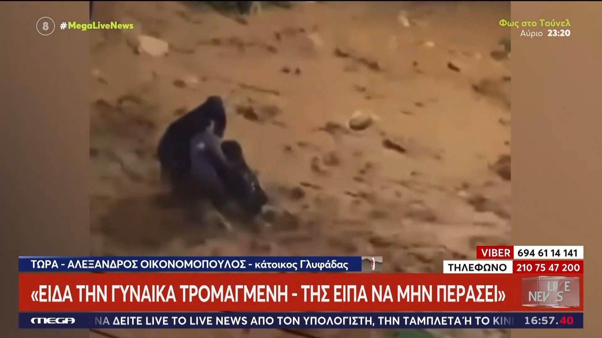 Ο άνδρας που έσωσε μια γυναίκα από τον ορμητικό χείμαρρο στη Γλυφάδα διηγείται την δραματική εμπειρία του. Περιγράφει την τρομακτική στιγμή που αντίκρισε την γυναίκα σε κίνδυνο και την απόφαση του να την βοηθήσει, παρά τους κινδύνους που αντιμετώπισε.