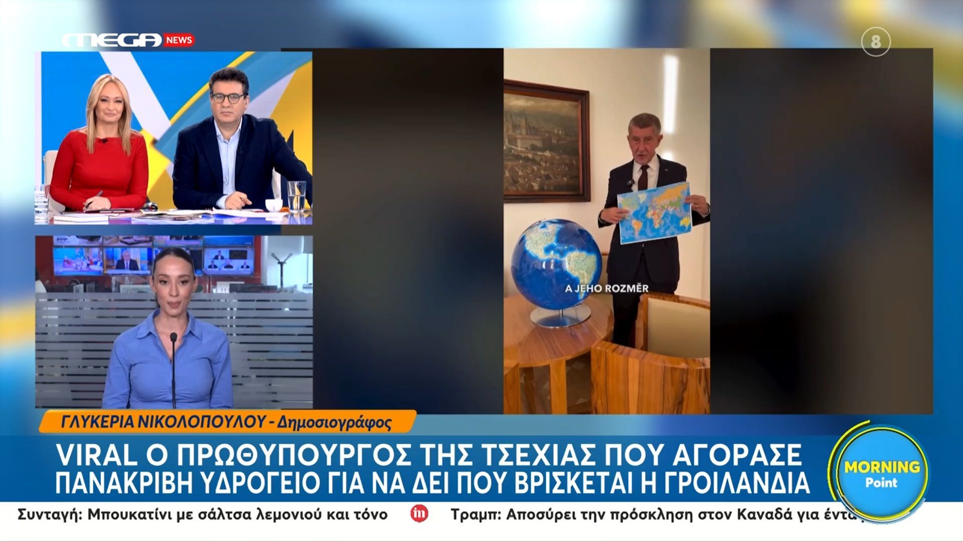 Ο Πρωθυπουργός της Τσεχίας έχει προκαλέσει αίσθηση στα μέσα κοινωνικής δικτύωσης με την απόφασή του να αγοράσει ένα υδρόγειο. Στόχος του είναι να δείξει την γεωγραφική θέση της Γροιλανδίας και να ενισχύσει την εκπαίδευση σχετικά με τις παγκόσμιες αναφορές.