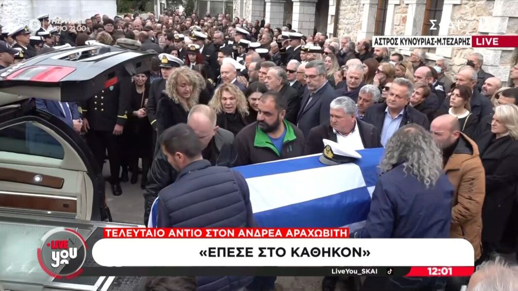 Σπαρακτικές στιγμές εκτυλίχθηκαν στην κηδεία του 53χρονου λιμενικού, ο οποίος έχασε τη ζωή του κατά τη διάρκεια επιχείρησης διάσωσης στο Άστρος Κυνουρίας. Η οικογένεια, οι συνάδελφοι και πλήθος κόσμου συγκεντρώθηκαν για να αποχαιρετήσουν τον ήρωα που θυσίασε τη ζωή του για να προστατεύσει τους άλλους.
