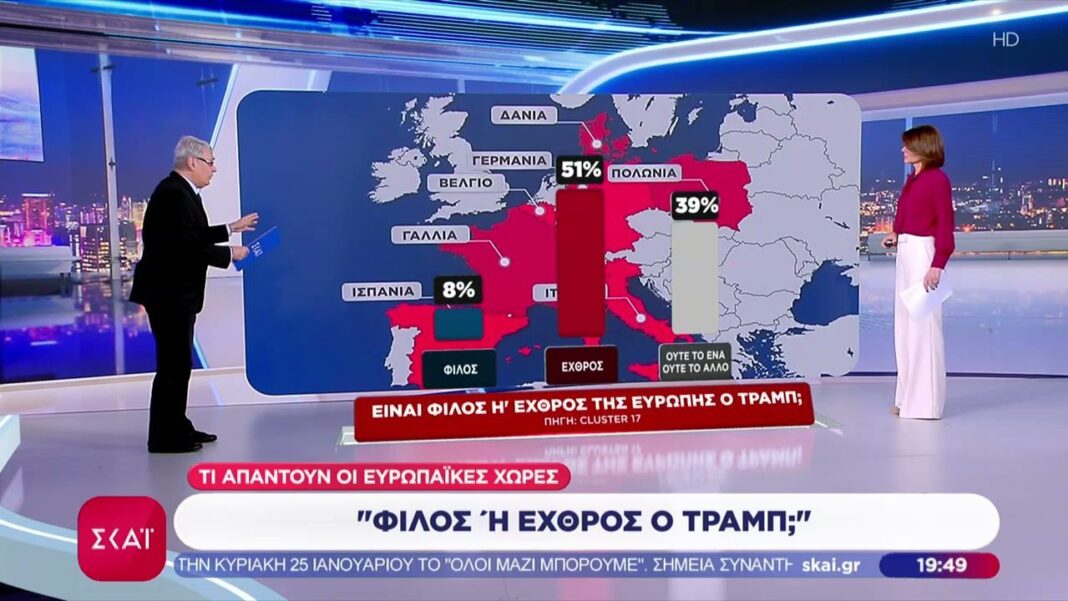Μια νέα δημοσκόπηση αποκαλύπτει τις απόψεις των Ευρωπαϊκών χωρών σχετικά με τον πρώην πρόεδρο των Ηνωμένων Πολιτειών, Ντόναλντ Τραμπ. Οι απαντήσεις δείχνουν μια ποικιλία στάσεων, από θετικές έως αρνητικές, με τους Ευρωπαίους να προβληματίζονται για τις επιπτώσεις της πολιτικής του στην ήπειρό τους.