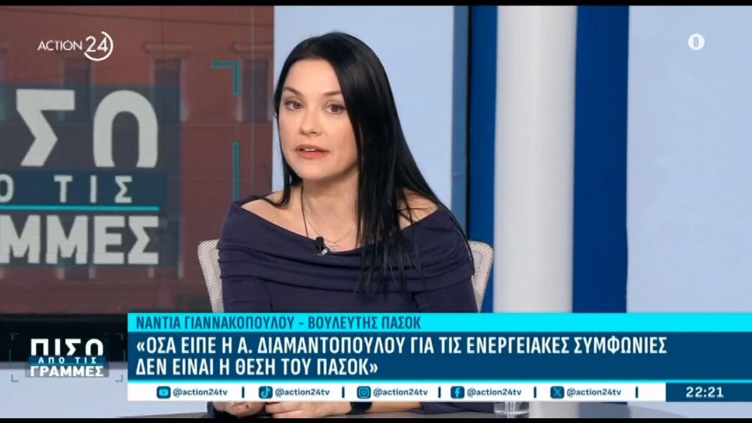 Η Νάντια Γιαννακοπούλου, βουλευτής του ΠΑΣΟΚ, εξέφρασε τη διαφωνία της σχετικά με τις πρόσφατες δηλώσεις της Άννας Διαμαντοπούλου αναφορικά με τις ενεργειακές συμφωνίες. Τόνισε ότι οι απόψεις της Διαμαντοπούλου δεν αντικατοπτρίζουν τις θέσεις του κόμματος και ότι απαιτείται ενιαία στάση σε ζητήματα εθνικής σημασίας.