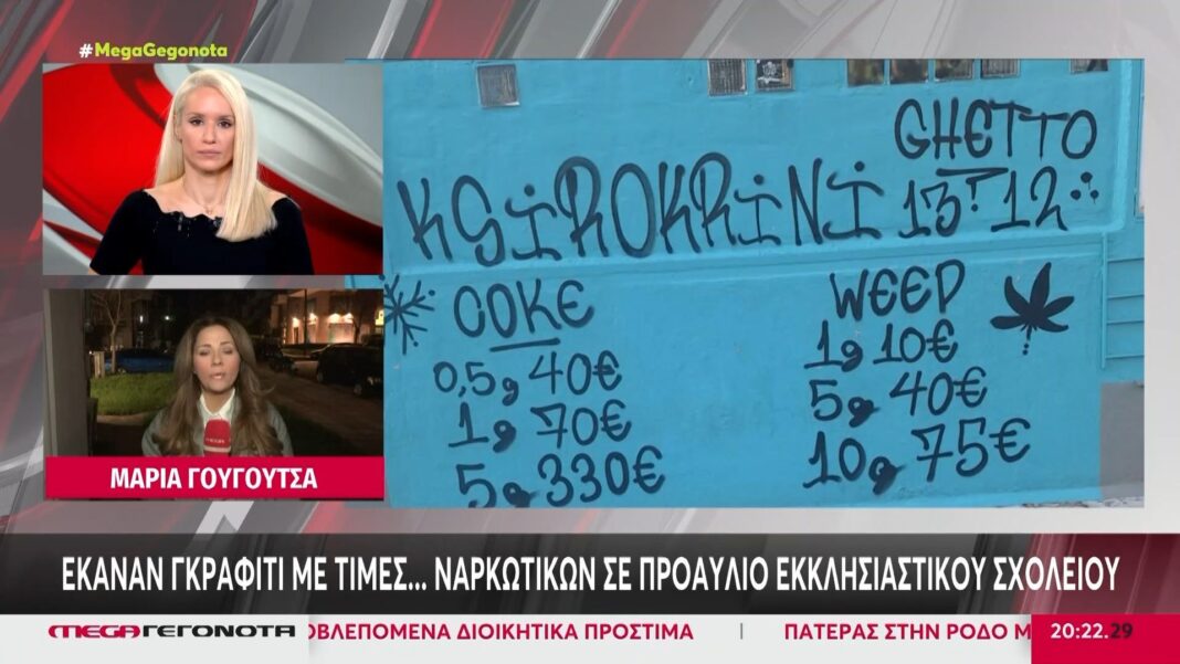 Άγνωστοι δράστες προχώρησαν στη δημιουργία “τιμοκαταλόγου” ναρκωτικών σε τοίχο σχολείου στη Θεσσαλονίκη, προκαλώντας σοβαρή ανησυχία στους κατοίκους της περιοχής. Η πράξη αυτή δεν είναι μόνο προκλητική, αλλά εγείρει και σοβαρά ερωτήματα σχετικά με την ασφάλεια των μαθητών και την επιρροή των ναρκωτικών στην τοπική κοινωνία.