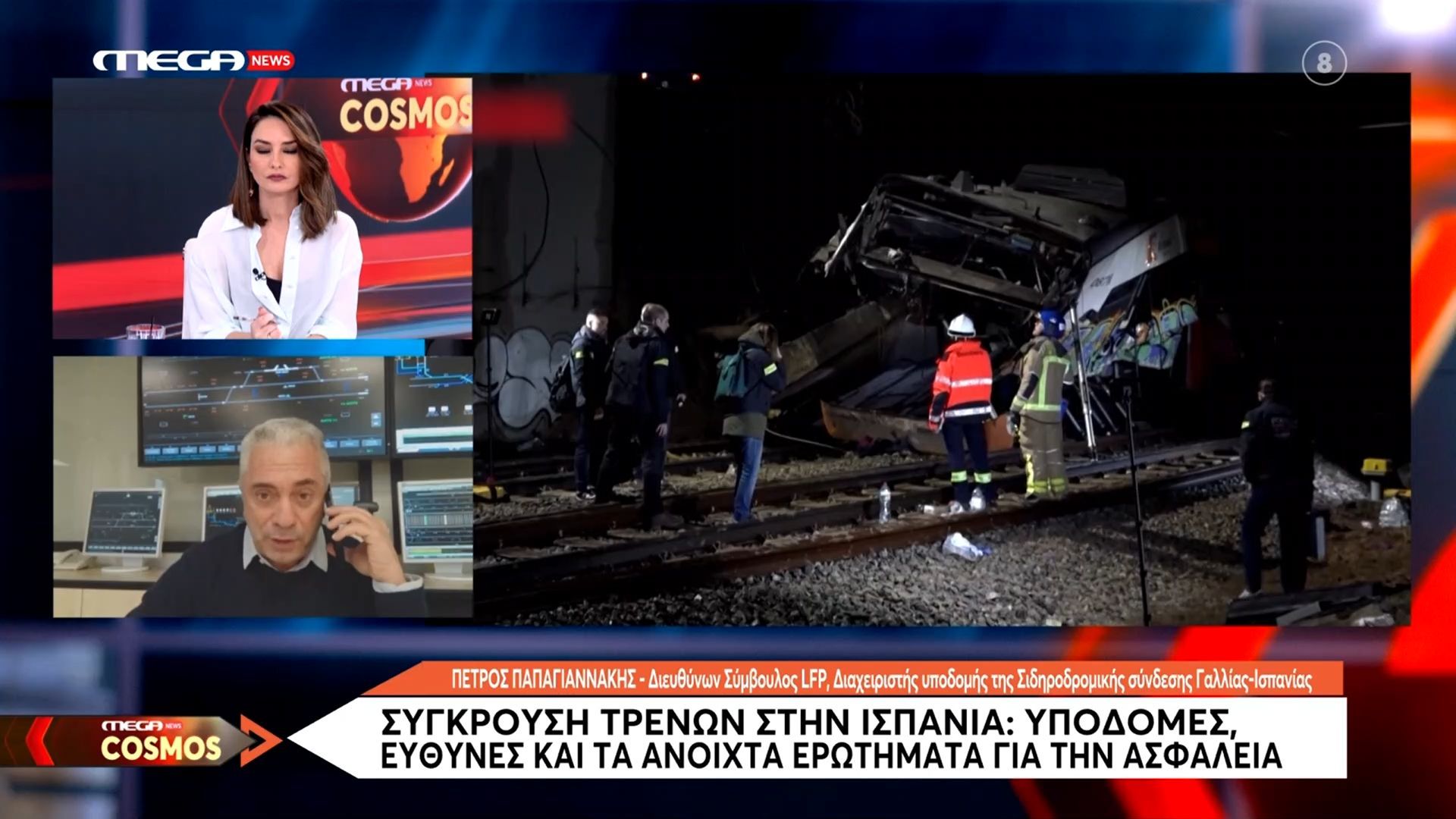 Στην εκπομπή, ο διευθύνων σύμβουλος LFP, Πέτρος Παπαγιαννάκης, αναλύει τη σύγκρουση τρένων που σημειώθηκε στην Ισπανία, εστιάζοντας στις υποδομές που σχετίζονται με το δίκτυο σιδηροδρόμων. Θέτει ερωτήματα σχετικά με τις ευθύνες των αρμόδιων φορέων και τις προληπτικές ενέργειες που πρέπει να ληφθούν για την αποφυγή παρόμοιων τραγωδιών στο μέλλον.