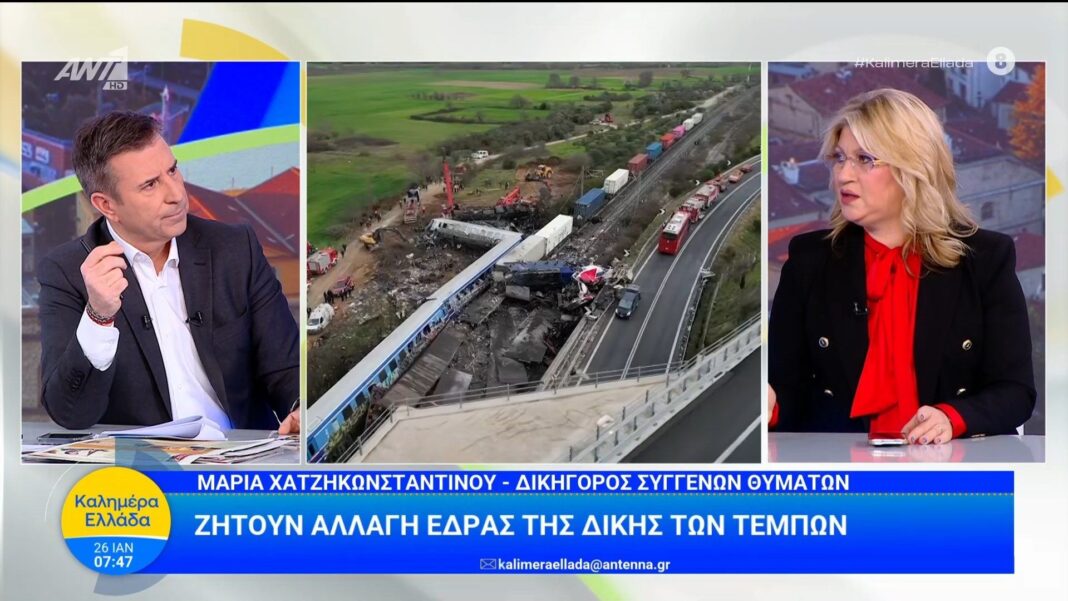 Η δικηγόρος Μαρία Χατζηκωνσταντίνου πιέζει για αλλαγή χώρου δίκης Τεμπών, επισημαίνοντας προβλέψεις για πιθανές επιρροές στη διαδικασία στις 26/01/2026.