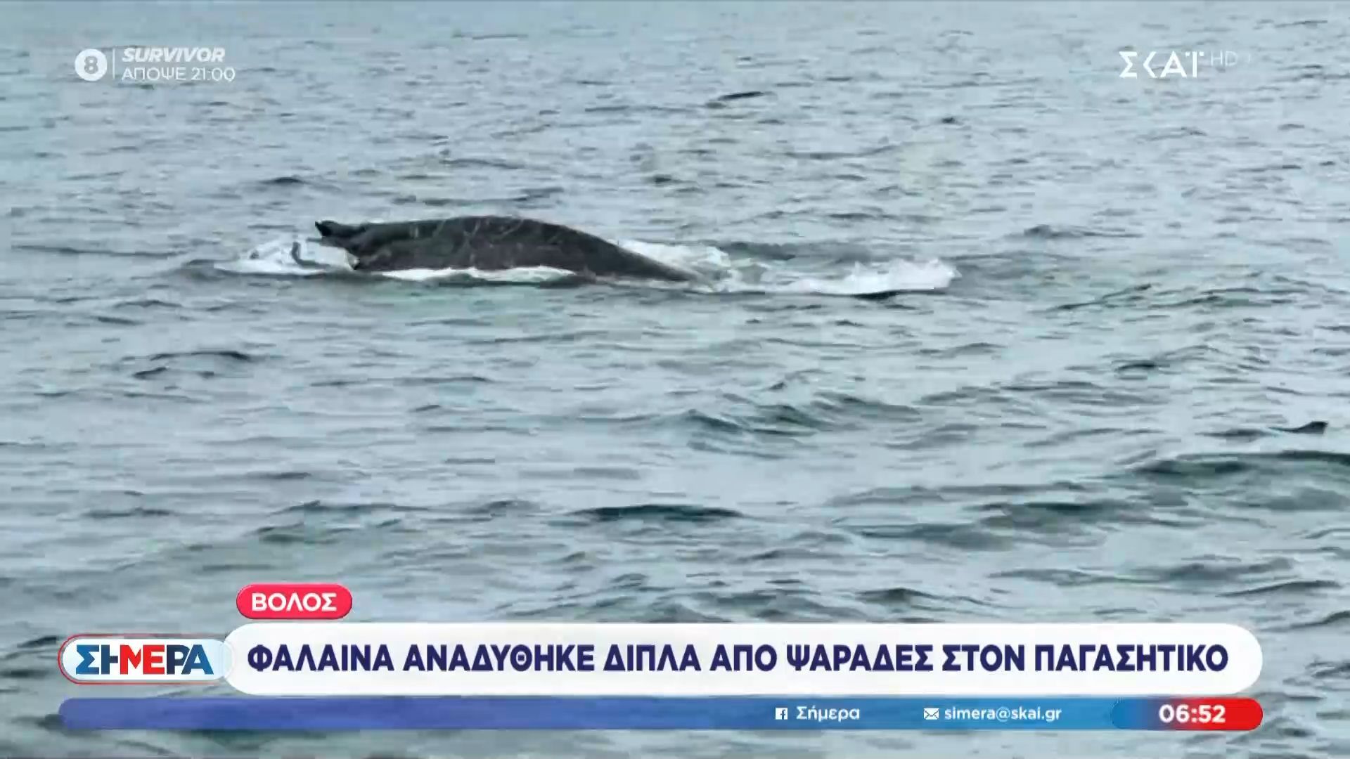Μια απροσδόκητη συνάντηση συνέβη στον Παγασητικό, όταν μια φάλαινα αναδύθηκε σε κοντινή απόσταση από ομάδα ψαράδων. Οι θαλασσινές αυτές γίγαντες εντυπωσίασαν τους ψαράδες, οι οποίοι είχαν την ευκαιρία να παρακολουθήσουν από κοντά την εντυπωσιακή τους παρουσία.