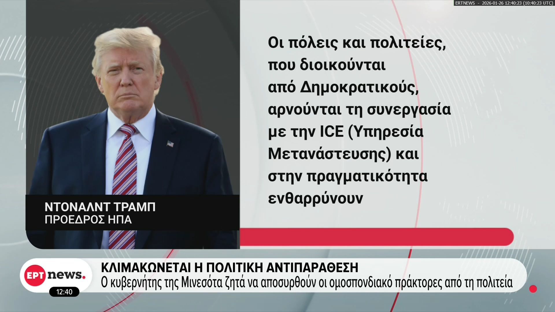 Διαδηλώσεις έχουν ξεσπάσει στη Μινεάπολη, με πλήθος κόσμου να εκφράζει την αγανάκτησή του μετά τον θάνατο του Άλεξ Πέρι από πράκτορα της Υπηρεσίας Μετανάστευσης. Οι συμμετέχοντες ζητούν δικαιοσύνη και ζητούν την απολογιστική ευθύνη των αρχών, ενώ οι συγκρούσεις με την αστυνομία έχουν ενταθεί.