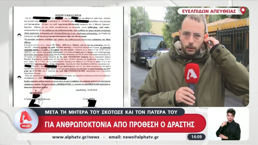 Ο δράστης συνελήφθη στη Γλυφάδα και κατηγορείται για τη δολοφονία των γονέων του, με τις αρχές να εξετάζουν τα ψυχολογικά του προβλήματα ως παράγοντες κινήτρου