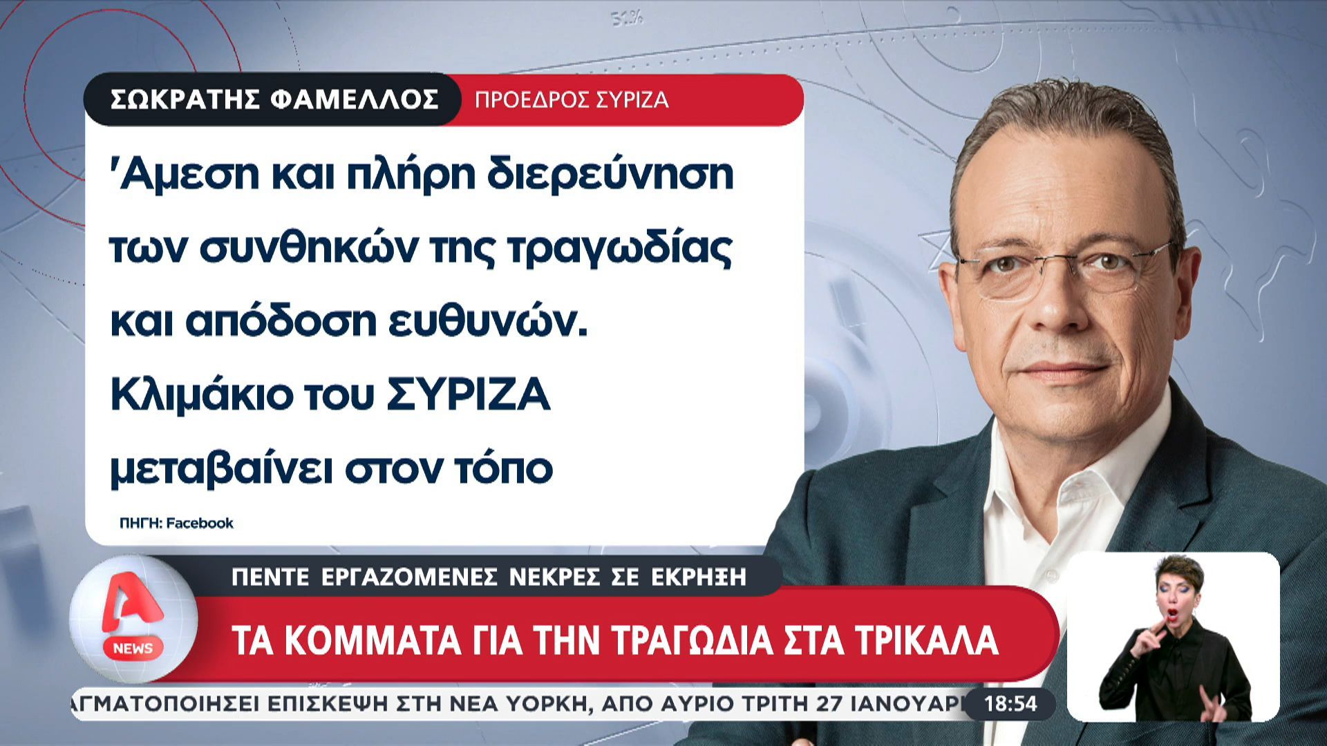 Πέντε γυναίκες εργαζόμενες έχασαν τη ζωή τους σε τραγικό περιστατικό που σημειώθηκε σε εργοστάσιο στα Τρίκαλα. Η είδηση έχει προκαλέσει έντονες αντιδράσεις από όλα τα πολιτικά κόμματα, τα οποία εκφράζουν τα συλλυπητήριά τους και ζητούν άμεσες απαντήσεις για τις συνθήκες που οδήγησαν στην τραγωδία.