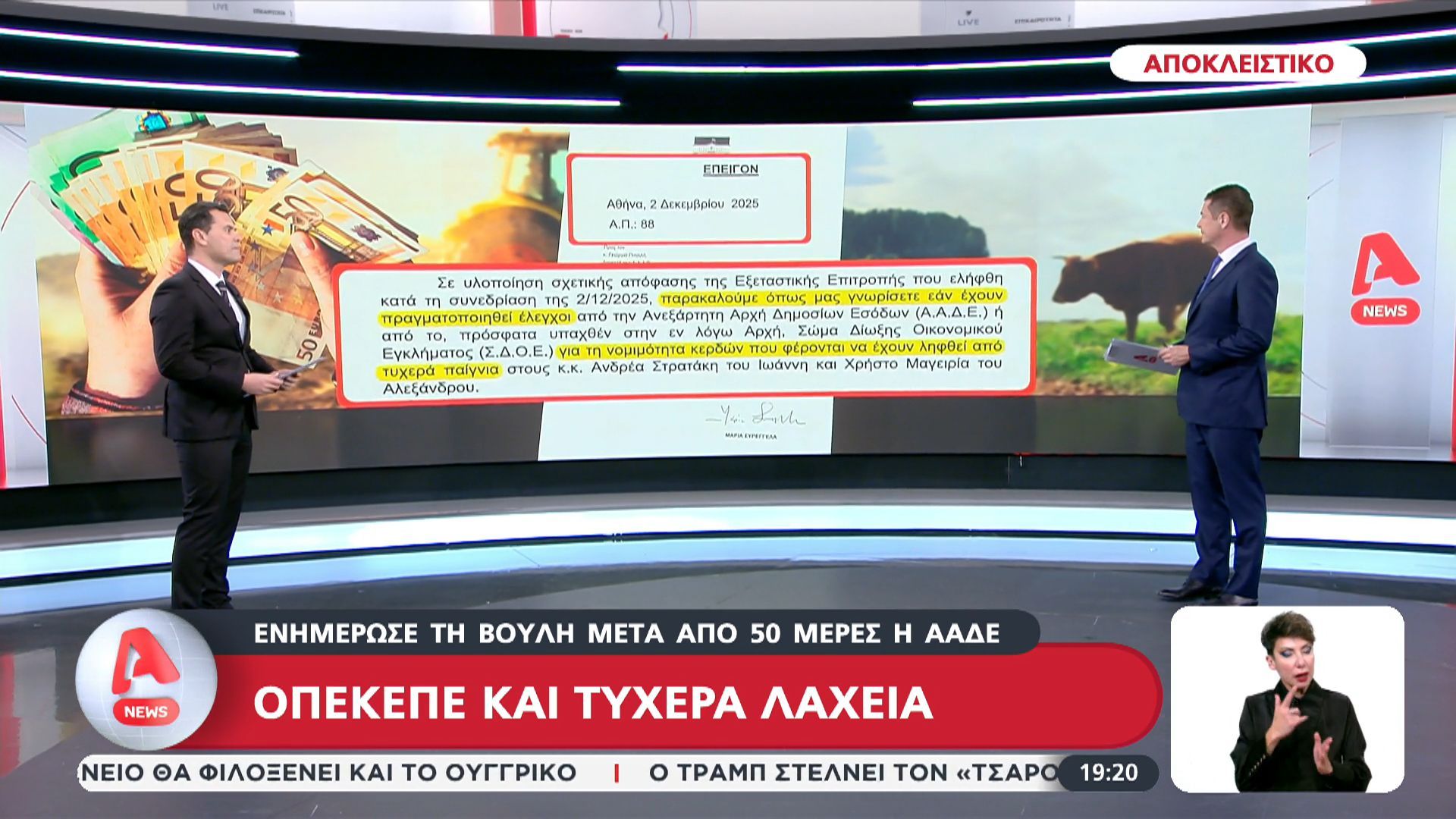 Η ΑΑΔΕ ενημέρωσε τη Βουλή σχετικά με τη συνεργασία του ΟΠΕΚΕΠΕ και των τυχερών λαχείων, μετά από 50 ημέρες σιωπής. Η καθυστέρηση αυτή έχει προκαλέσει ανησυχίες σχετικά με τη διαφάνεια και τη διαχείριση των εσόδων από τα λαχεία, εν μέσω αυξανόμενης πίεσης για λογοδοσία.