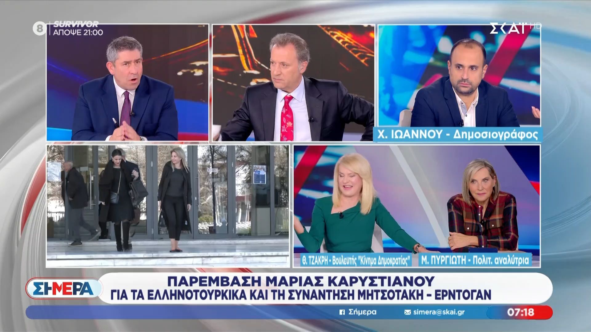 Η Θεοδώρα Τζάκρη σχολίασε την παρέμβαση της Μαρίας Καρυστιανού σχετικά με τη διαχείριση των ελληνοτουρκικών σχέσεων. Τόνισε ότι η μυστική διπλωματία δεν μπορεί να είναι αποδεκτή, αλλά τόνισε τη σημασία της δημόσιας διαβούλευσης για τη διαμόρφωση μιας κοινής στρατηγικής.