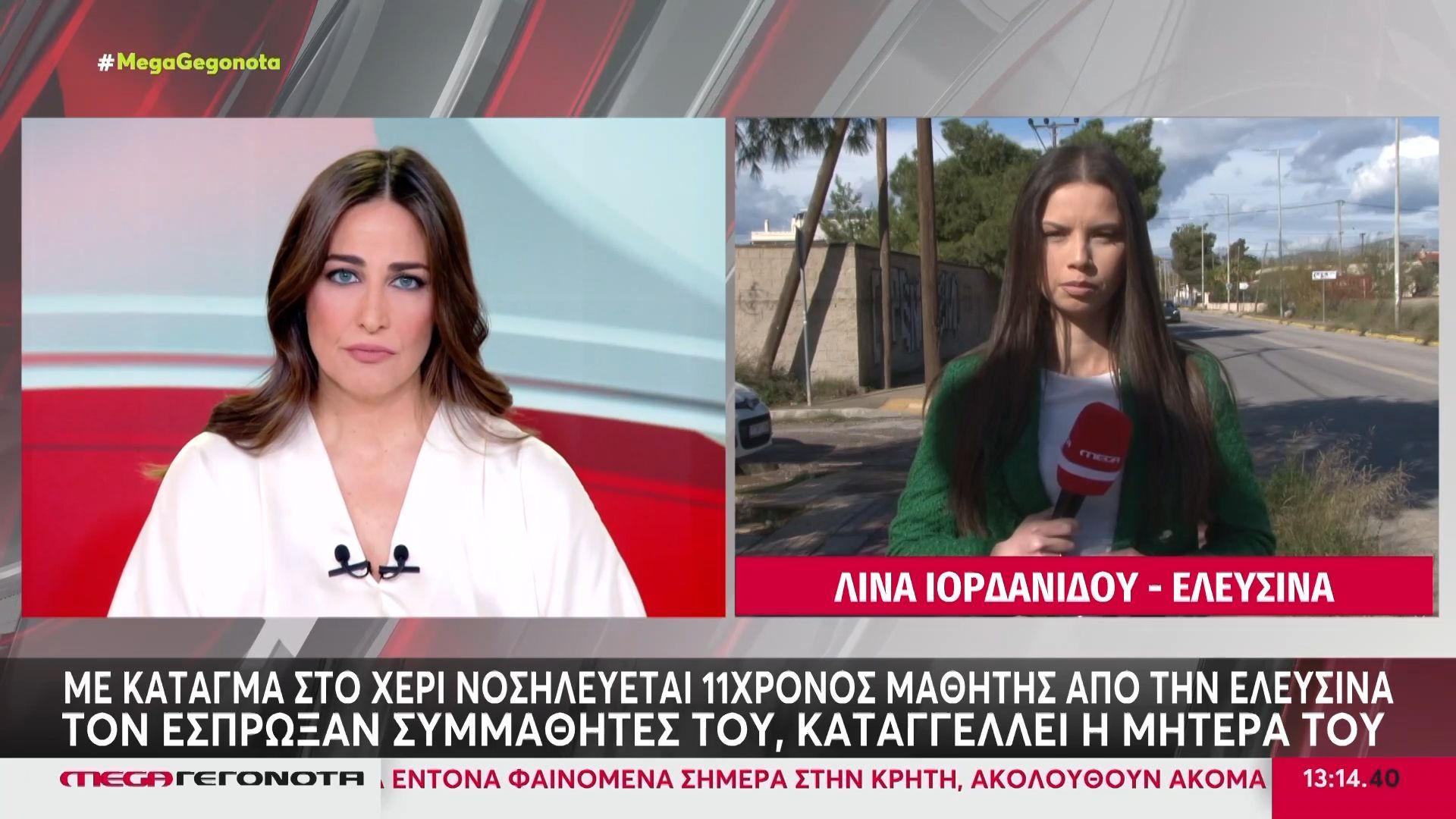 Στο νοσοκομείο Παίδων «Αγλαΐα Κυριακού» μεταφέρθηκε ένας 11χρονος μαθητής από την Ελευσίνα μετά από επίθεση που δέχτηκε από συμμαθητές του. Ο μαθητής υπέστη κάταγμα στο χέρι, καθώς οι συμμαθητές του τον κυνήγησαν και τον έσπρωξαν, με αποτέλεσμα να πέσει και να τραυματιστεί.