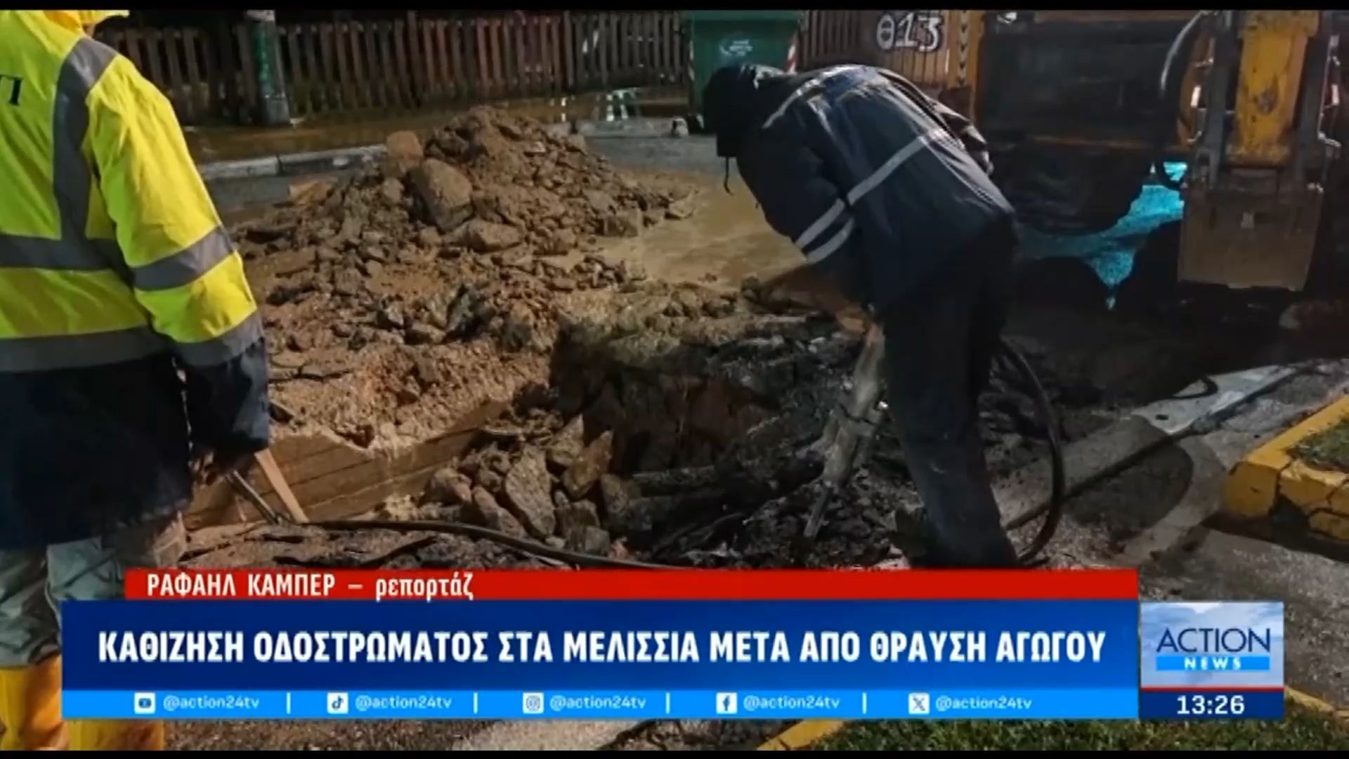 Καθίζηση οδοστρώματος σημειώθηκε στα Μελίσσια λόγω θραύσης αγωγού, προκαλώντας σοβαρές επιπτώσεις στην κυκλοφορία και την ασφάλεια των οδηγών. Οι υπηρεσίες του δήμου έχουν ήδη κινητοποιηθεί, προκειμένου να ελέγξουν την κατάσταση και να αποκαταστήσουν τη ζημιά το συντομότερο δυνατό.