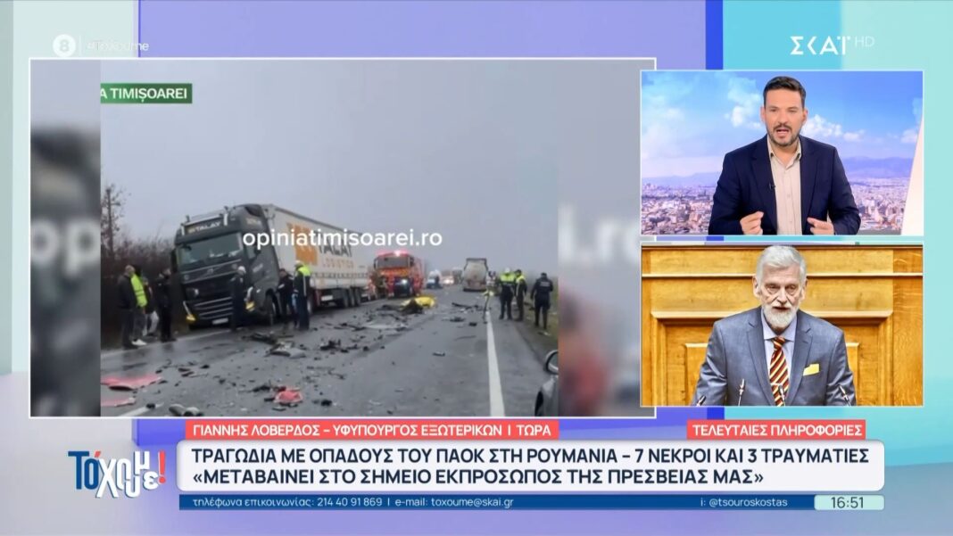 Ο Γιάννης Λοβέρδος, Υφυπουργός Εξωτερικών, αναφέρθηκε στο τραγικό δυστύχημα που σημειώθηκε στη Ρουμανία, όπου νέοι άνθρωποι έχασαν τη ζωή τους. Η δήλωσή του τονίζει τη σοβαρότητα της κατάστασης και την ανάγκη για άμεσες ενέργειες προκειμένου να διασφαλιστεί η ασφάλεια των φιλάθλων.