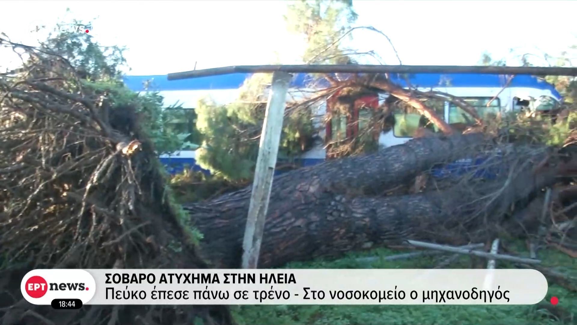 Σοβαρό ατύχημα σημειώθηκε στην Ηλεία όταν ένα πεύκο έπεσε πάνω σε διερχόμενο τρένο. Ο μηχανοδηγός τραυματίστηκε και μεταφέρθηκε στο νοσοκομείο για ιατρική φροντίδα, ενώ οι επιβάτες του τρένου παραμένουν ασφαλείς.