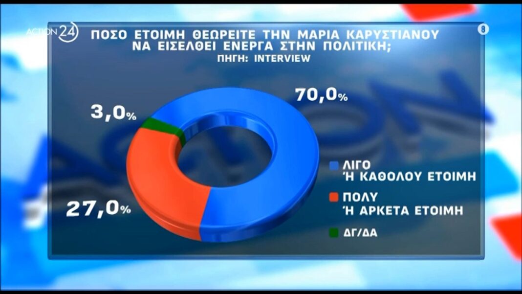 Η πρόσφατη δημοσκοπική έρευνα δείχνει ότι το 70% των πολιτών θεωρεί την Καρυστιανού πολιτικά ανέτοιμη, γεγονός που εγείρει ανησυχίες για την πολιτική της πορεία. Ο Μαρινάκης, σχολιάζοντας τις απόψεις της σχετικά με τα εθνικά θέματα, εκφράζει αμφιβολίες για τη βιωσιμότητα της καριέρας της, εφόσον δεν αναθεωρήσει τη στάση της.