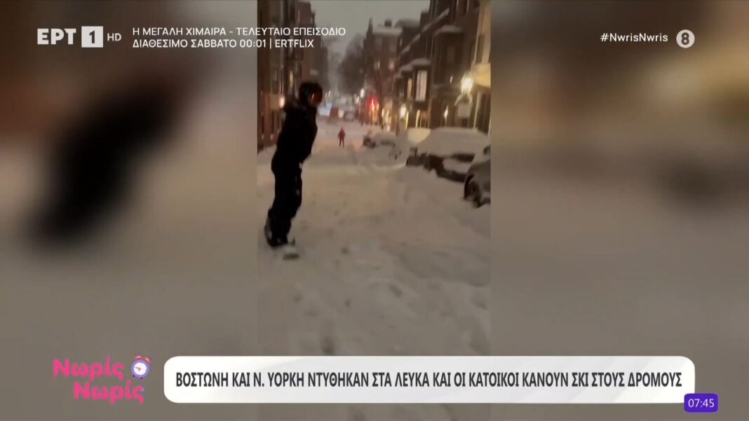 Η Βοστώνη και η Νέα Υόρκη αντιμετώπισαν μια ισχυρή χιονόπτωση, καλύπτοντας τους δρόμους και τις γειτονιές τους με ένα παχύ στρώμα χιονιού. Οι κάτοικοι εκμεταλλεύτηκαν την κατάσταση, αψηφώντας τις δυσκολίες της κυκλοφορίας και επιλέγοντας να κάνουν σκι στους δρόμους, προσφέροντας μια μοναδική εικόνα της αστικής ζωής.