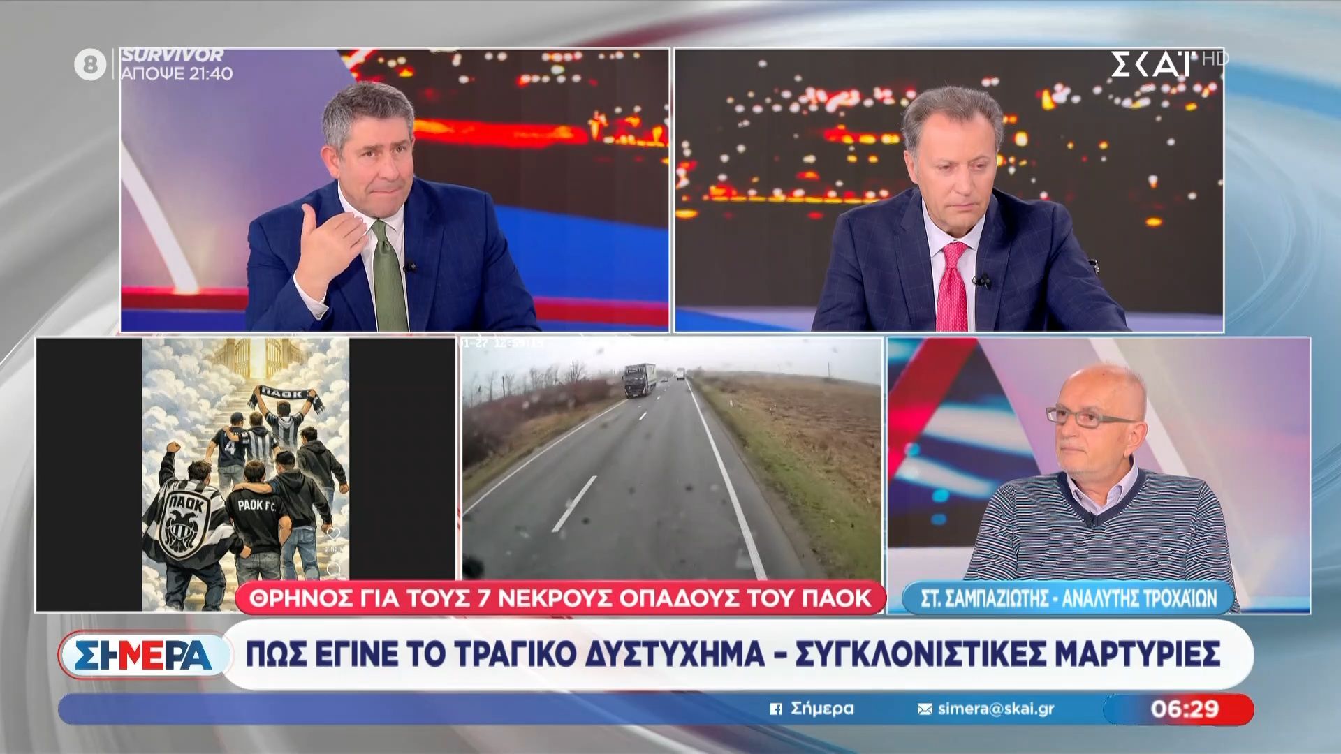 Θρήνος έχει καλύψει τη χώρα μετά τον τραγικό θάνατο επτά οπαδών του ΠΑΟΚ σε τροχαίο ατύχημα. Ο Στάθης Σαμπαζιώτης, αναλυτής τροχαίων, αναφέρει ότι οι αιτίες του ατυχήματος μπορεί να οφείλονται σε κούραση ή απειρία του οδηγού, γεγονός που καθιστά την προσοχή στο δρόμο ακόμα πιο σημαντική.