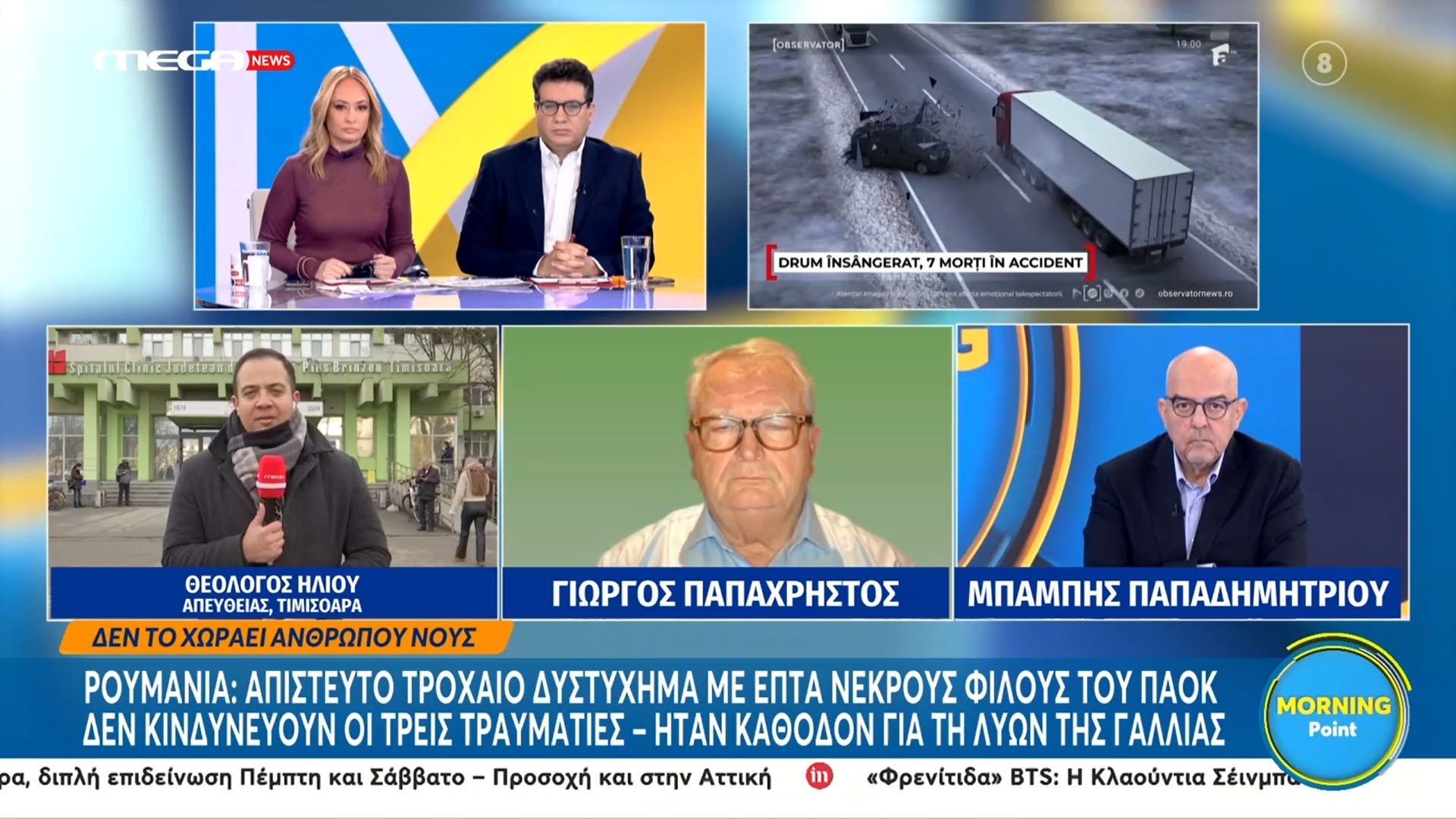 Τρεις άνθρωποι που τραυματίστηκαν σε τροχαίο δυστύχημα στη Ρουμανία είναι πλέον εκτός κινδύνου. Οι τραυματίες βγήκαν σώοι από το βαν που ενεπλάκη στο ατύχημα, το οποίο σημειώθηκε σε κεντρικό δρόμο.